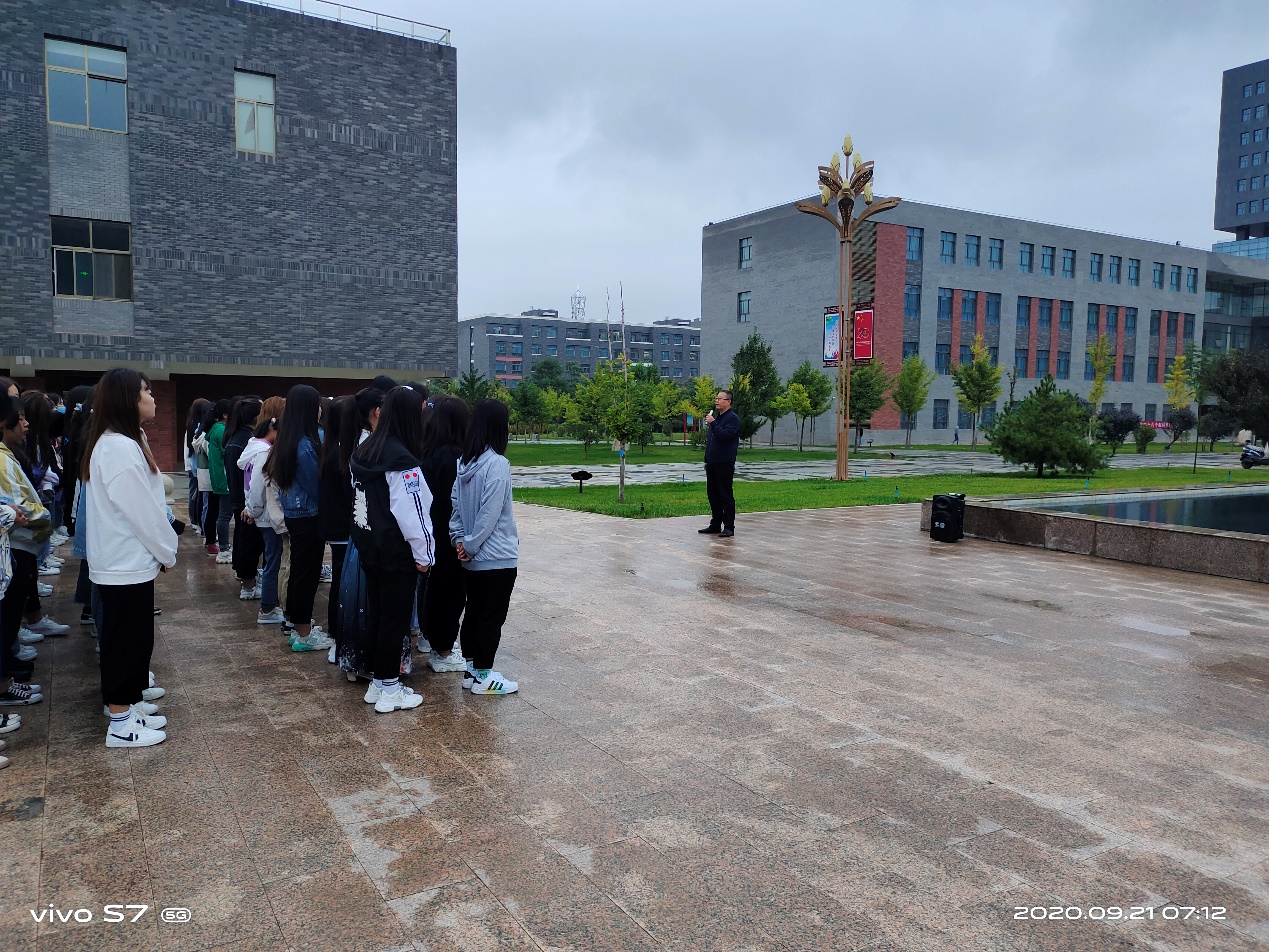最后,魏潤(rùn)明以“秋冬季節(jié),加強(qiáng)疫情防護(hù)”為題做了講話。他要求全體師生:一、嚴(yán)格日常管理。提醒學(xué)生早起以增強(qiáng)身體素質(zhì)、健康體魄,要重視自身健康素養(yǎng)和自我防護(hù)能力。二、嚴(yán)格執(zhí)行請(qǐng)銷假制度。各班主任對(duì)請(qǐng)假學(xué)生,須認(rèn)真核實(shí)情況,各班同學(xué)應(yīng)嚴(yán)格執(zhí)行請(qǐng)銷假制度。同時(shí),他告誡2018級(jí)學(xué)生,抓住有利時(shí)機(jī),提前做好“專升本”復(fù)習(xí)工作,為圓滿完成2021屆畢業(yè)生就業(yè)工作,做好準(zhǔn)備。
