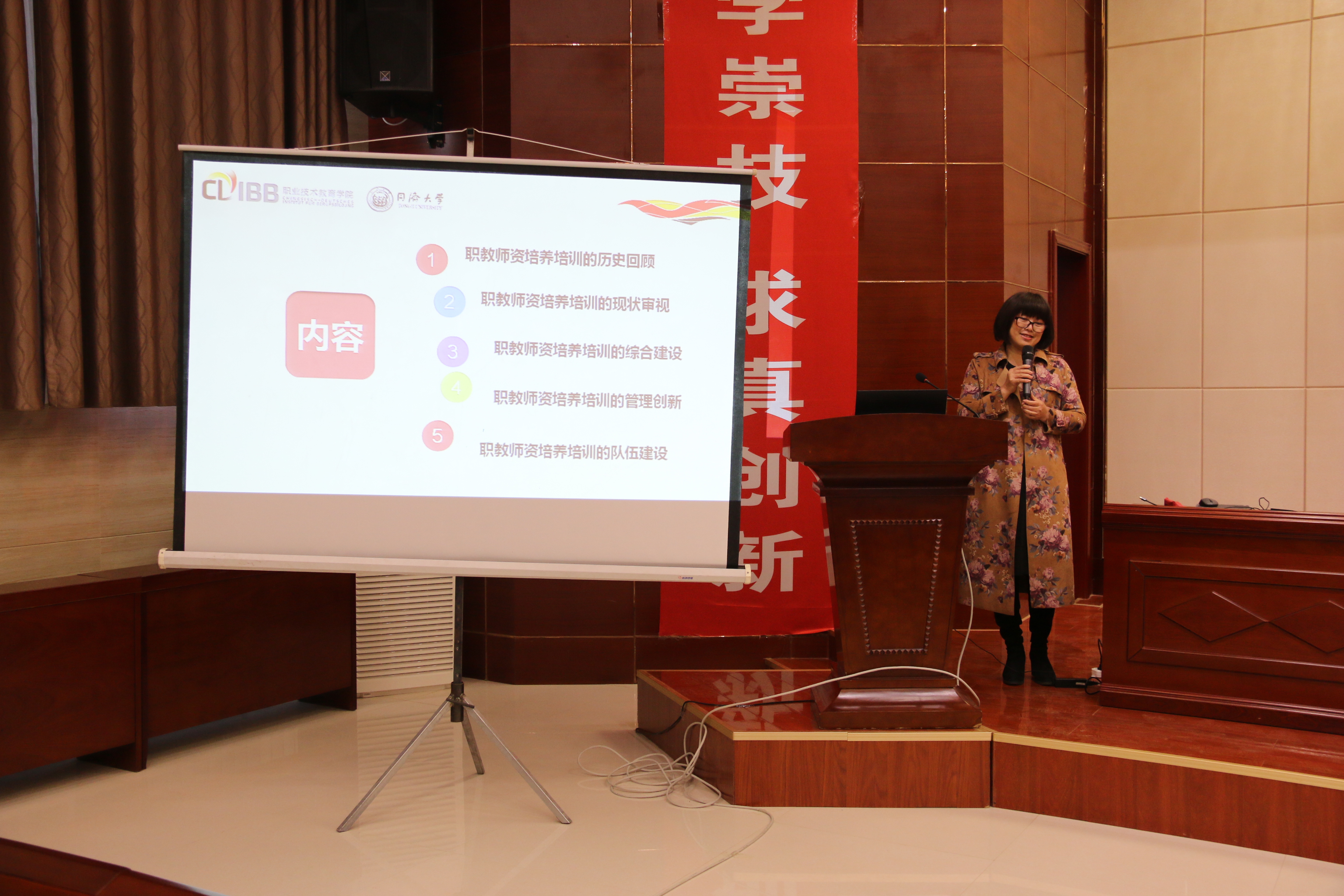 梅泓教授立足國(guó)家宏觀政策,以獨(dú)特的視角,從當(dāng)前中國(guó)經(jīng)濟(jì)發(fā)展新常態(tài)下的轉(zhuǎn)型與創(chuàng)新、職業(yè)教育新機(jī)遇的建設(shè)與創(chuàng)新及師資隊(duì)伍面臨的新挑戰(zhàn)與創(chuàng)新三個(gè)方面進(jìn)行了深度透析。梅泓教授語(yǔ)言幽默,理念新穎,會(huì)場(chǎng)氣氛熱烈。