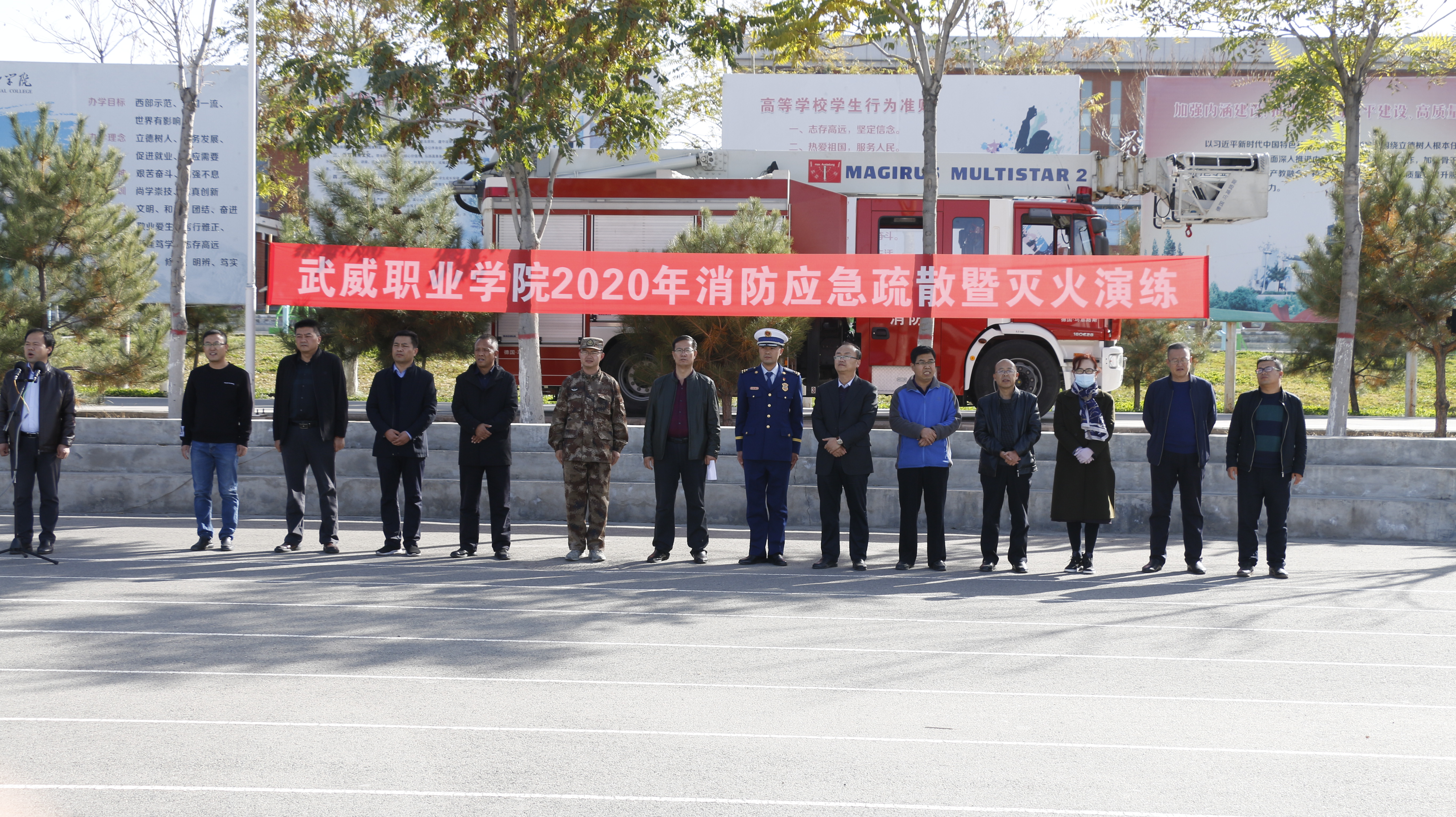 10月21日下午,學(xué)院聯(lián)合涼州區(qū)消防救援中隊舉行了2020年消防應(yīng)急疏散和滅火演練活動。學(xué)院副院長張開禮、涼州區(qū)消防救援中隊指導(dǎo)員李躍興出席活動,保衛(wèi)處、學(xué)生工作處、各教學(xué)院系負(fù)責(zé)同志現(xiàn)場觀摩演練,約4300多名2020級新生參加了演練?。