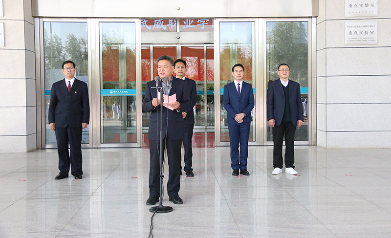 揭牌儀式上,趙明介紹學院教育教學改革發(fā)展所取得的成效,強調(diào)職業(yè)教育和普通教育是兩種不同的教育類型,具有同等重要地位,全面落實《國家職業(yè)教育改革實施方案》和“技能甘肅”部署要求,推動學院“雙高”建設(shè),爭創(chuàng)高職應用型本科院校,離不開高水平的合作醫(yī)院,離不開高水平的師資隊伍。教師實踐基地的揭牌成立,將會進一步加強雙方的合作交流,實現(xiàn)資源共享、優(yōu)勢互補、共同發(fā)展,我們要積極探索和創(chuàng)新基地育人方式,使之成為“雙師型”教師培養(yǎng)的搖籃。