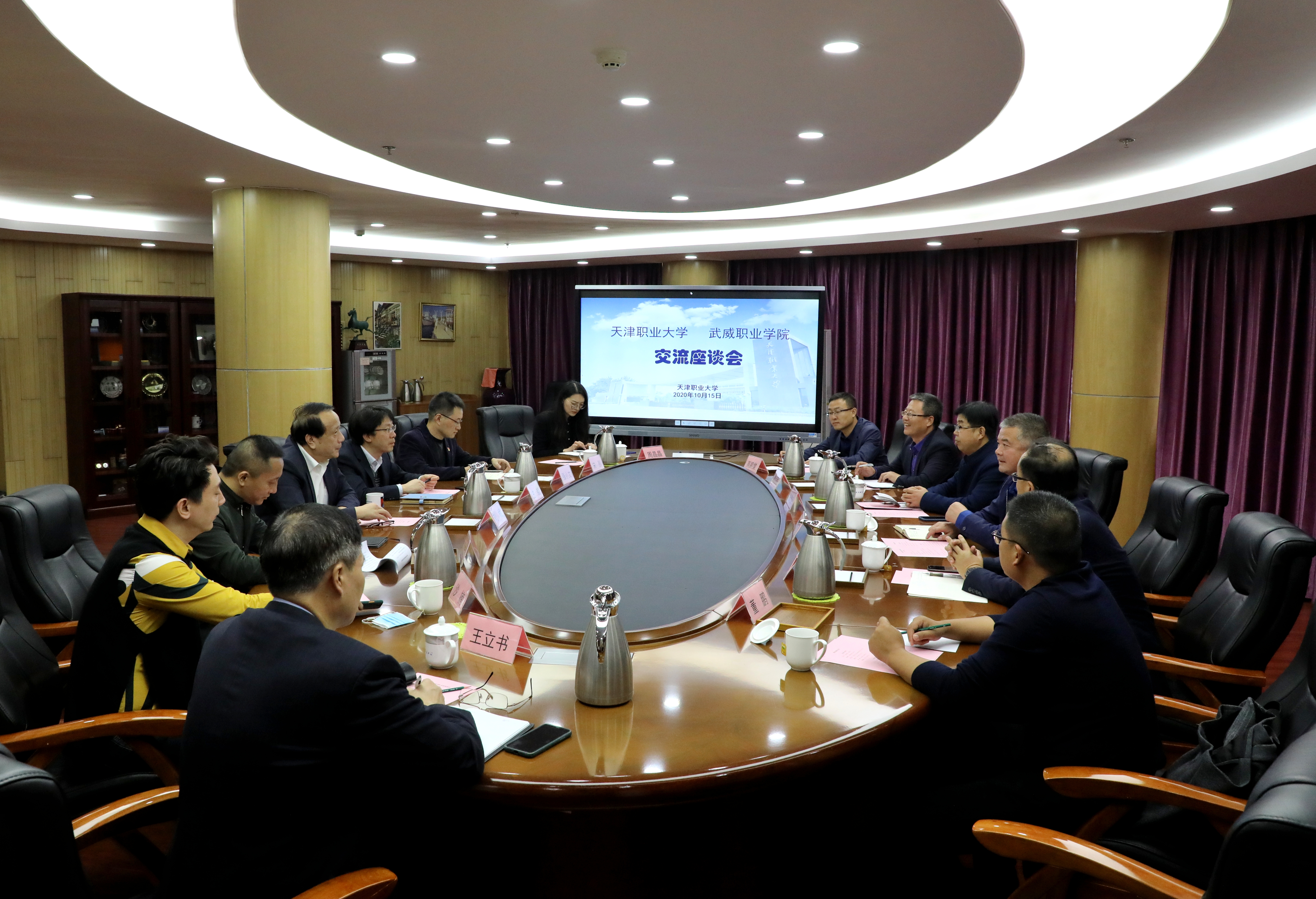 考察組一行分別與天津醫(yī)學(xué)高等??茖W(xué)校、天津職業(yè)大學(xué)進(jìn)行了深入交流座談。天津醫(yī)高專是國(guó)家雙高校中唯一一所衛(wèi)生類學(xué)校,在座談會(huì)上,醫(yī)高專為學(xué)院醫(yī)藥衛(wèi)生類專業(yè)群建設(shè)提出了指導(dǎo)意見(jiàn),介紹了醫(yī)高?!?.5+1.5”學(xué)制安排促就業(yè)、教學(xué)系黨委行政雙組長(zhǎng)抓就業(yè)、就業(yè)工作經(jīng)費(fèi)動(dòng)態(tài)調(diào)整引領(lǐng)就業(yè)的工作機(jī)制,并就下一步共同培養(yǎng)師資、互派青年骨干教師交流學(xué)習(xí)達(dá)成共識(shí)。天津職業(yè)大學(xué)是《天津—甘肅職業(yè)教育協(xié)作實(shí)施方案》合作院校,在天津職大座談會(huì)上,兩校圍繞專業(yè)群組群、產(chǎn)業(yè)學(xué)院組建模式、教學(xué)模式、探索產(chǎn)業(yè)學(xué)院建設(shè)、混合所有制二級(jí)學(xué)院建設(shè)、就業(yè)工作“一對(duì)一”模式、學(xué)生管理經(jīng)驗(yàn)和成果進(jìn)行了分享與交流。劉斌校長(zhǎng)出席并主持會(huì)議,對(duì)學(xué)院的雙高建設(shè)給予了特別關(guān)心與指導(dǎo)。他希望,雙方作為兄弟院校,要進(jìn)一步加強(qiáng)交流合作,努力為推動(dòng)?xùn)|西協(xié)作和武威職業(yè)教育高質(zhì)量發(fā)展做出新的更大的貢獻(xiàn)。