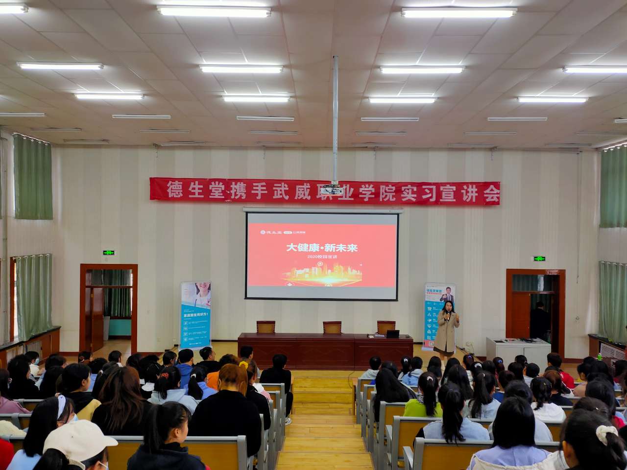 2020年11月5日,武威職業(yè)學(xué)院藥學(xué)系攜手德生堂在正德廳舉辦實(shí)習(xí)宣講會(huì)。藥學(xué)系黨總支書記、主任魏潤明、藥學(xué)系副主任楊建美、德生堂集團(tuán)武威區(qū)域經(jīng)理呂福英及2021屆172名畢業(yè)生參加宣講會(huì)。