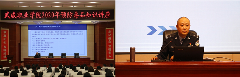 為進(jìn)一步加強(qiáng)學(xué)院毒品預(yù)防教育工作,不斷提高學(xué)生識毒、防毒、拒毒意識,2020年11月6日下午,學(xué)院團(tuán)委邀請武威市公安局禁毒支隊(duì)政委、市禁毒辦副主任杜興林在菁英廳作了題為“健康人生 綠色無毒”預(yù)防毒品專題知識講座,師生代表共200余人聆聽講座。