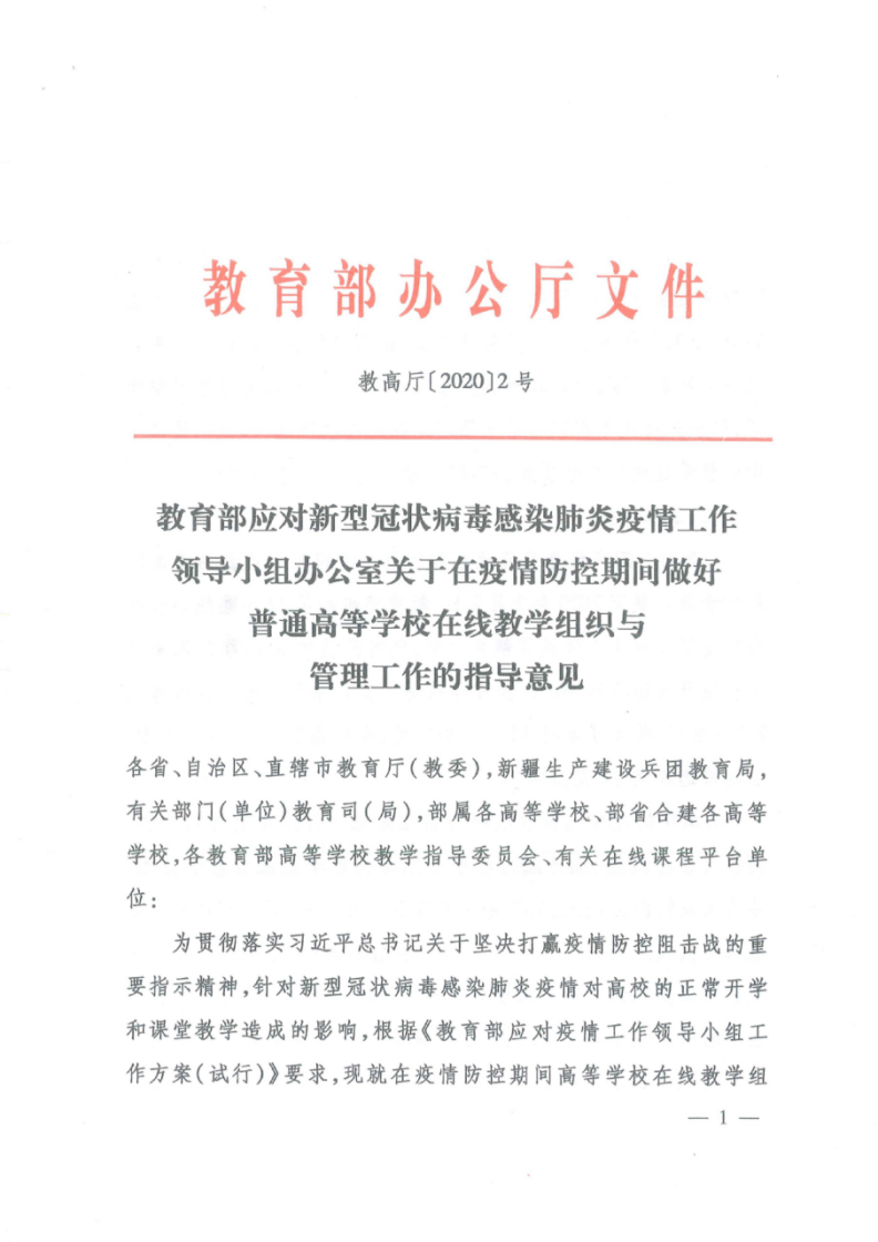 教育部做好普通高等學(xué)校在線教學(xué)組織與管理工作的指導(dǎo)意見(jiàn)