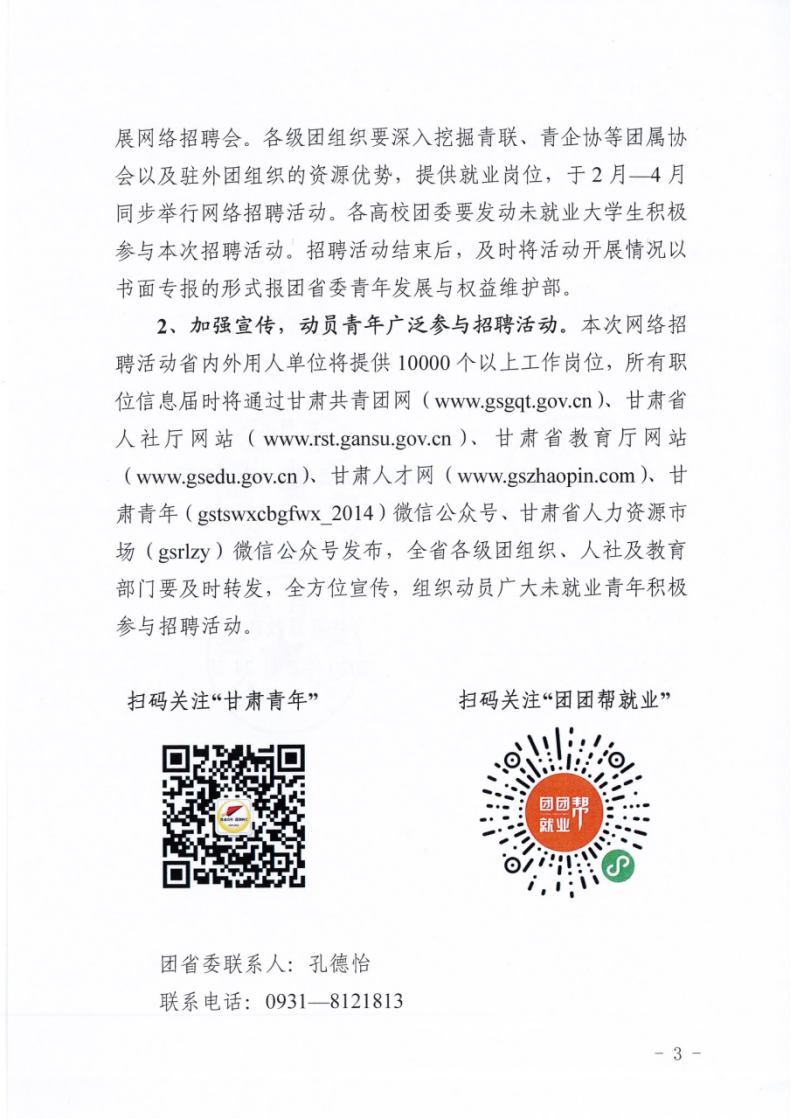 關于組織開展甘肅共青團助力脫貧攻堅第三屆青春招聘會(網絡)活動的通知