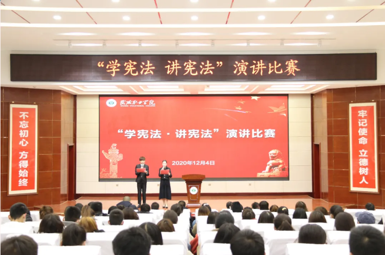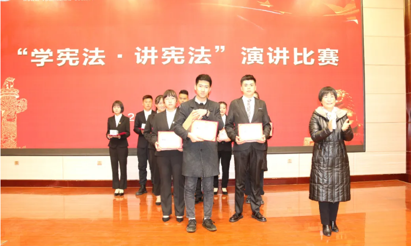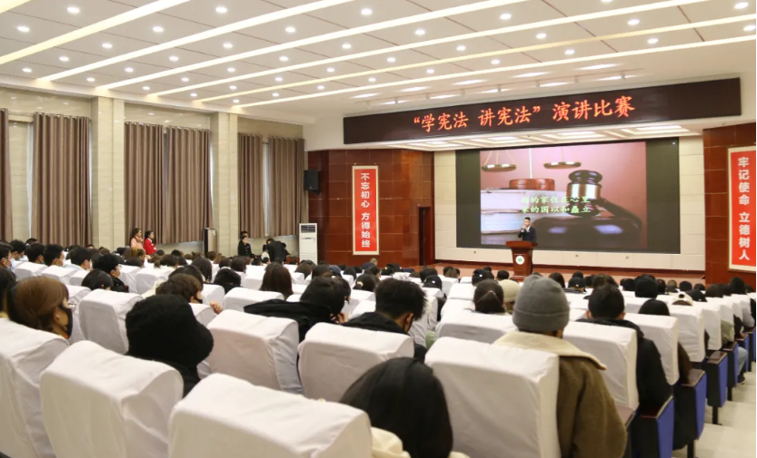 12月4日下午,學(xué)院“學(xué)憲法 講憲法”演講比賽于菁英廳舉行。學(xué)院黨委委員、副院長何毅出席活動(dòng)。擔(dān)任此次比賽的評(píng)委是:宣傳統(tǒng)戰(zhàn)部部長魏全民,雙創(chuàng)中心副主任顏魯薪,學(xué)生工作處姚斌,省級(jí)普通話測試員、宣傳統(tǒng)戰(zhàn)部趙炯星,質(zhì)量管理辦公室馮文娟,院團(tuán)委王冠群。各系輔導(dǎo)員、民法典伴我行主題手抄報(bào)比賽獲獎(jiǎng)的25名同學(xué)及師生代表共220人參加活動(dòng)。