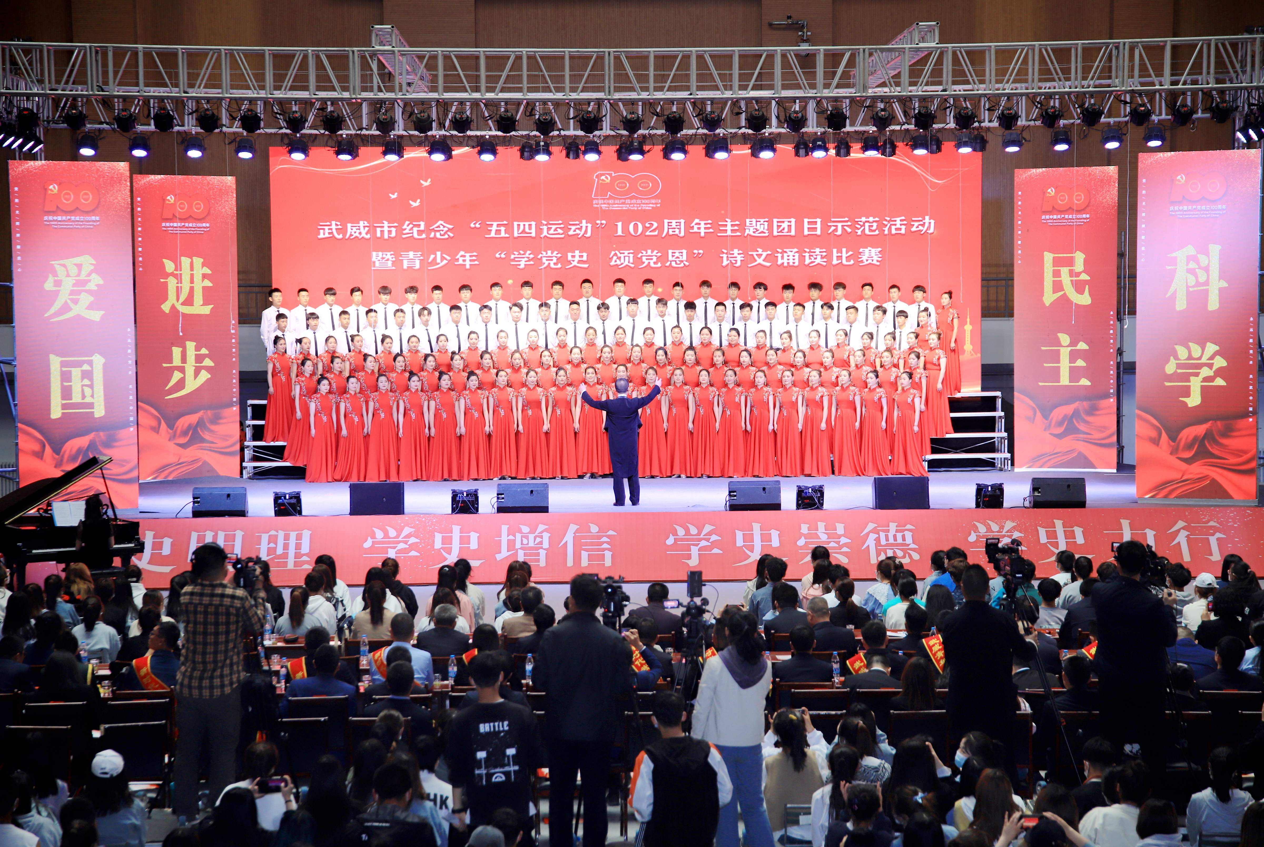 今年是中國共產(chǎn)黨成立100周年,也是五四運動102周年。為傳承革命精神,大力弘揚愛國、進步、民主、科學的偉大五四精神,以實際行動迎接黨的百年華誕,深化黨史學習教育,牢記青年初心使命,堅定不移感黨恩、強信念、跟黨走,4月29日下午,武威市青少年“學黨史、頌黨恩”詩文誦讀比賽在我院體育館舉行。