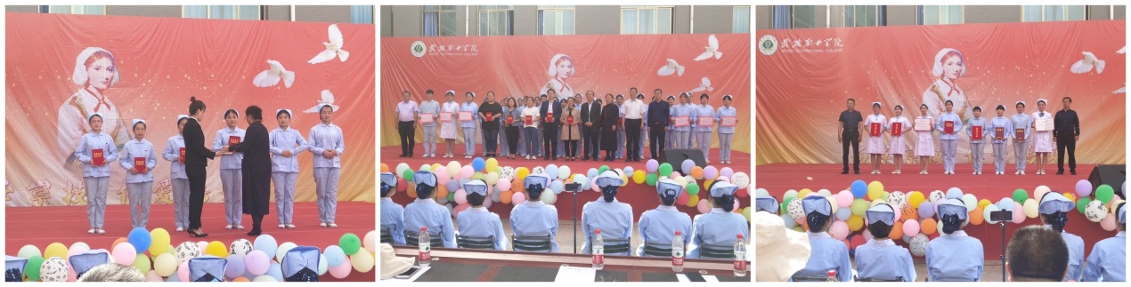 頒獎儀式激勵同學們銳意進取。伴隨著白衣天使之歌的音樂,學院領(lǐng)導向2021年甘肅省護理技能大賽獲獎選手及學院第七屆護理技能大賽獲獎的團體和個人表示熱烈的祝賀,同時頒發(fā)獎狀和榮譽證書并合影留念。