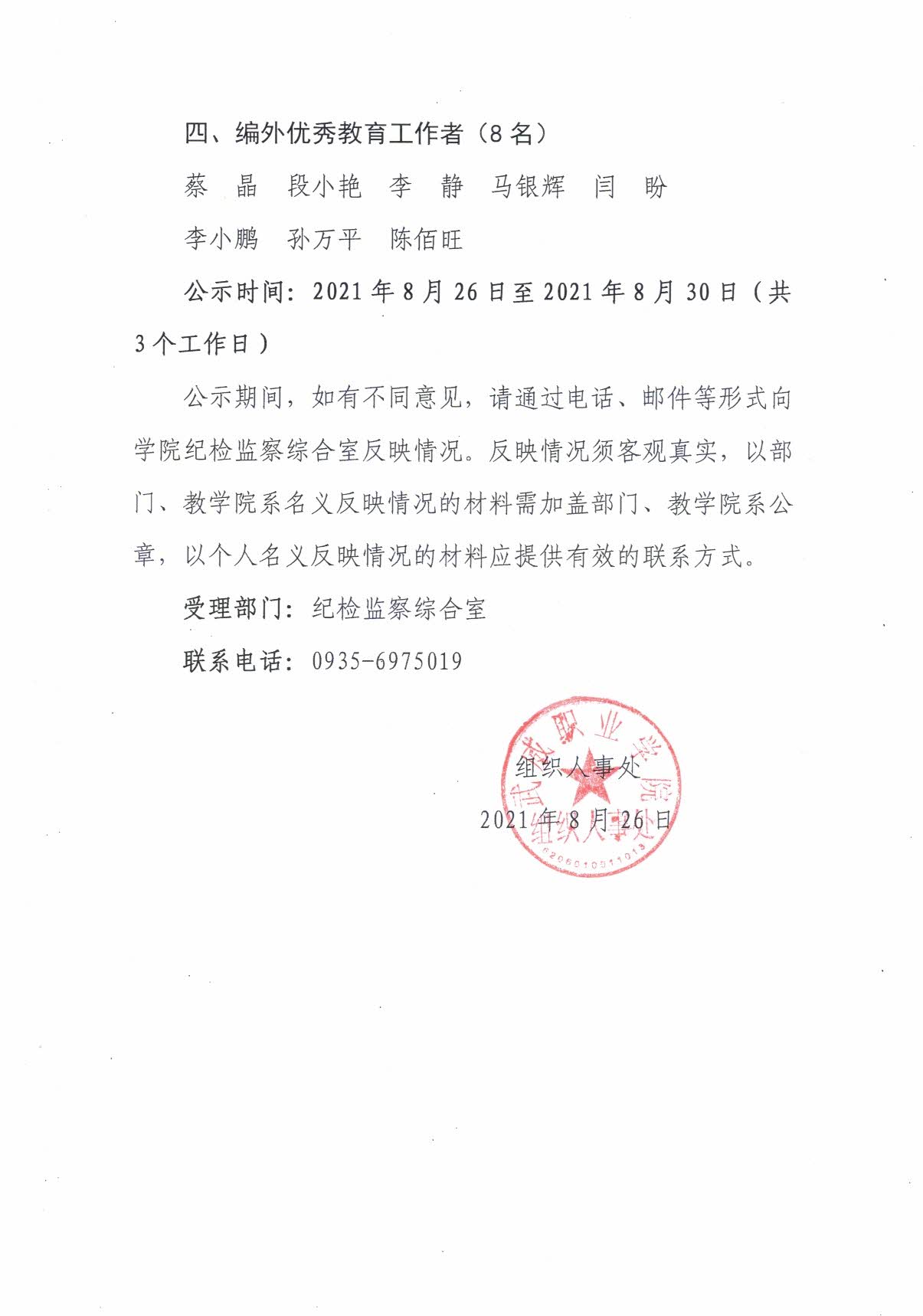 關(guān)于對(duì)2021年甘肅省“園丁獎(jiǎng)”、武威市教育工作先進(jìn)個(gè)人評(píng)選對(duì)象推薦結(jié)果…