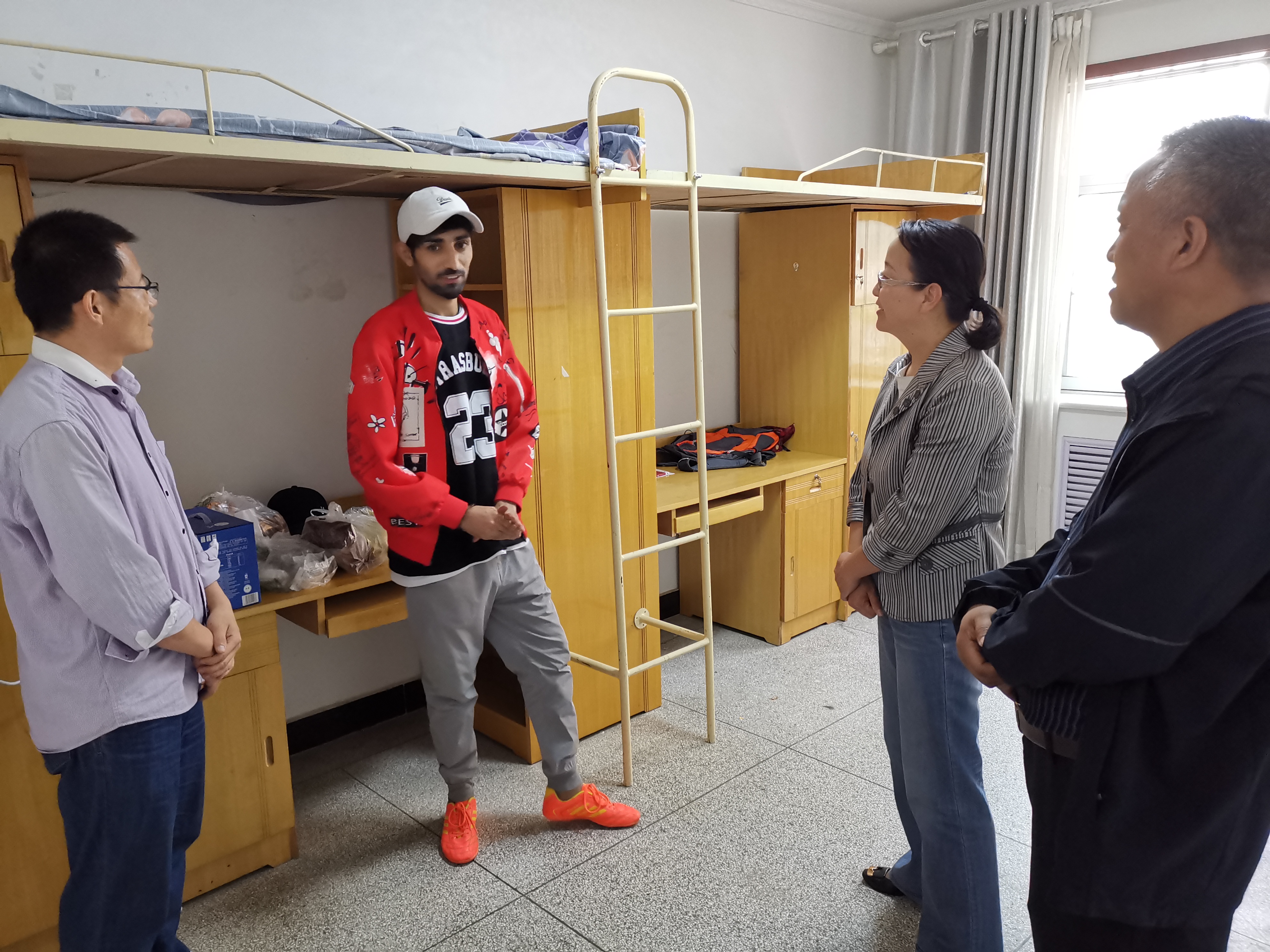 田迎春先后深入2019級(jí)、2021級(jí)來(lái)華留學(xué)生宿舍、廚房,查看、了解留學(xué)生住宿、生活情況,向留學(xué)生送上慰問(wèn)品。在留學(xué)生宿舍,田迎春與留學(xué)生親切交談,關(guān)切詢(xún)問(wèn)留學(xué)生日常生活、專(zhuān)業(yè)學(xué)習(xí)、漢語(yǔ)學(xué)習(xí)等情況。她向留學(xué)生簡(jiǎn)要介紹了中秋節(jié)、國(guó)慶節(jié)的來(lái)歷、風(fēng)俗及意義,留學(xué)生們對(duì)中國(guó)傳統(tǒng)文化表現(xiàn)出濃厚興趣;她指出,留學(xué)生背井離鄉(xiāng)來(lái)華求學(xué),遇到困難在所難免,但要堅(jiān)定信心,學(xué)院會(huì)盡力滿(mǎn)足留學(xué)生學(xué)習(xí)、生活的需要;她鼓勵(lì)留學(xué)生積極主動(dòng)融入學(xué)院大家庭,廣交朋友,在融入、融合過(guò)程中體會(huì)在華學(xué)習(xí)生活的樂(lè)趣;她希望留學(xué)生珍惜寶貴的來(lái)華學(xué)習(xí)的機(jī)會(huì),不僅要學(xué)好理論知識(shí),而且要學(xué)好操作技能,不僅要學(xué)好專(zhuān)業(yè)知識(shí),而且要學(xué)好優(yōu)秀中華文化,講好中國(guó)故事,向世界展示真實(shí)的中國(guó),爭(zhēng)做知華友華愛(ài)華的留學(xué)生,爭(zhēng)做中國(guó)與世界各國(guó)友好的使者。