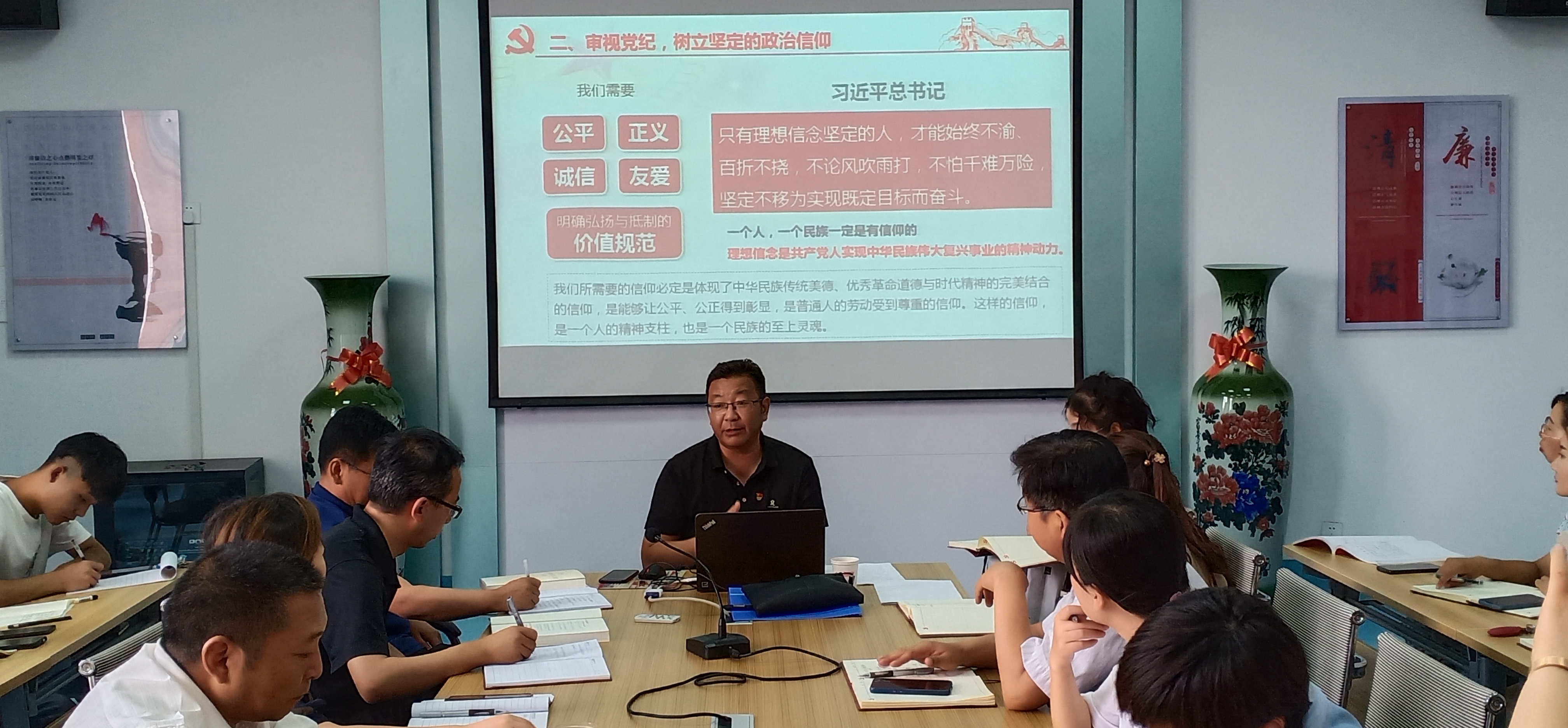 陳曉煜以《不忘初心 牢記歷史,增強(qiáng)廉潔意識(shí)》為題,用樸實(shí)精煉的語言、身邊生動(dòng)的事例,重點(diǎn)從不忘初心,重溫黨的歷史和黨紀(jì)歷史;審視黨紀(jì),樹立堅(jiān)定的政治信仰;解析腐敗,認(rèn)清腐敗的現(xiàn)狀及危害;增強(qiáng)廉潔意識(shí),筑牢思想道德防線四個(gè)方面進(jìn)行了講解。