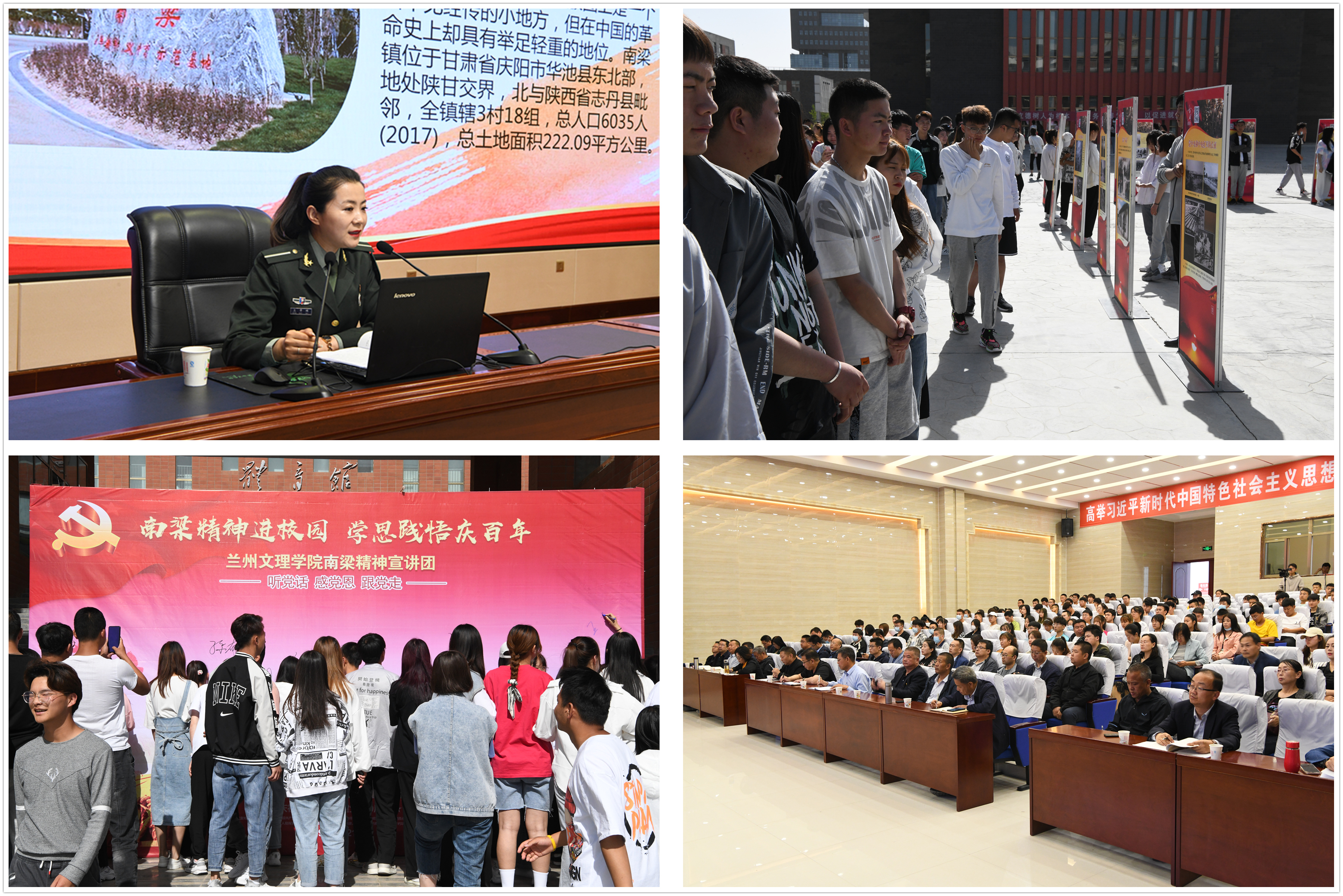 與此同時(shí),“講好南梁故事·永遠(yuǎn)跟黨走”主題展覽在大學(xué)生活動(dòng)中心前廣場(chǎng)開展,師生聆聽了南梁革命紀(jì)念館講解員的生動(dòng)講解,全面了解了劉志丹、謝子長、習(xí)仲勛等老一輩無產(chǎn)階級(jí)革命家在陜甘地區(qū)高舉旗幟,創(chuàng)建以南梁為中心的陜甘革命根據(jù)地,積極探索救國救民的道路的光輝事跡和偉大精神。師生們紛紛表示要以革命先烈為榜樣,不忘初心,牢記使命,學(xué)習(xí)傳承老一輩無產(chǎn)階級(jí)革命家的革命精神,爭(zhēng)做傳承和弘揚(yáng)南梁精神的踐行者。