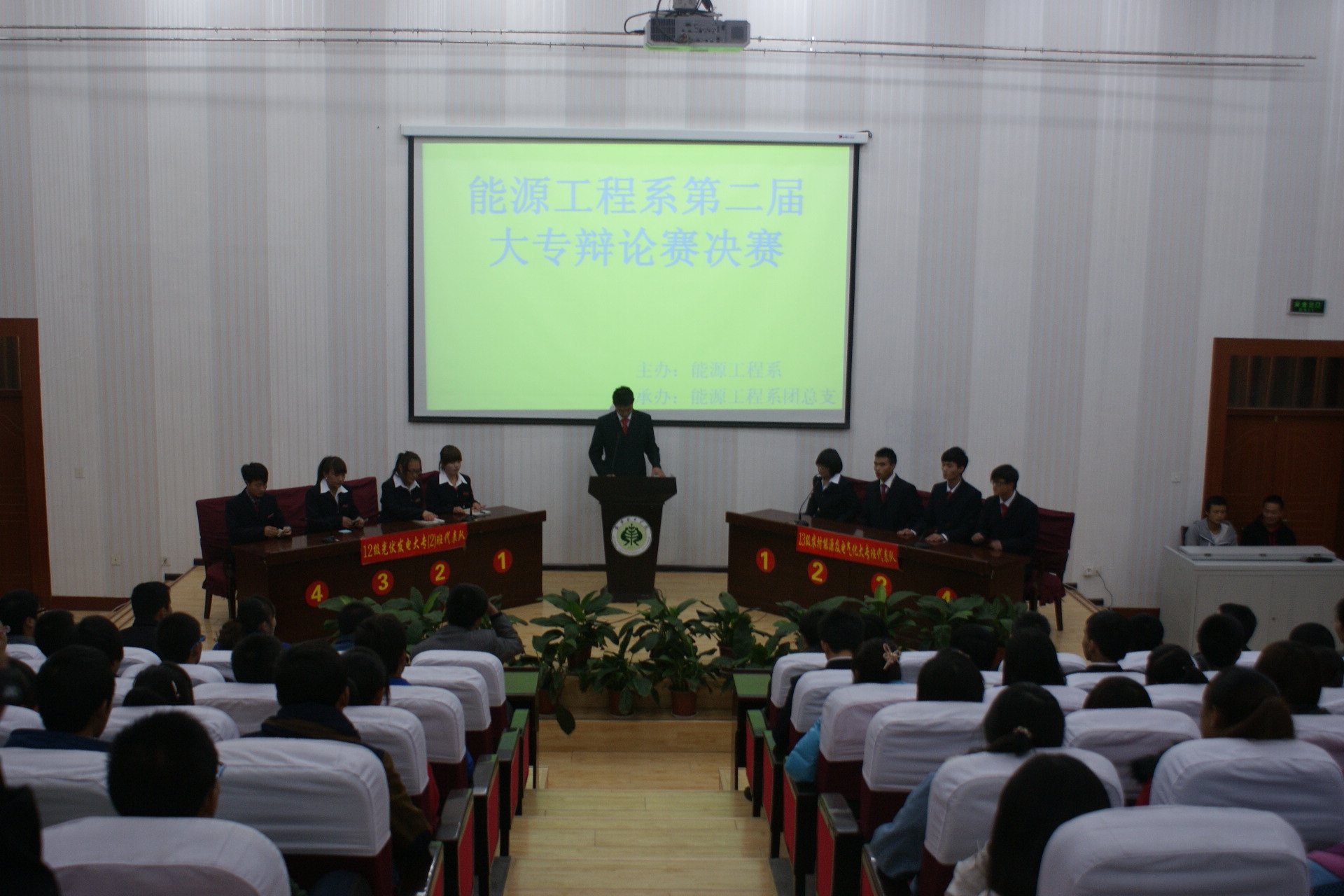 11月10日晚,能源工程系在東階梯教室成功舉辦了能源工程系第二屆大專生辯論賽三、四名和冠、亞軍爭奪戰(zhàn)。能源工程系全體老師和大一、大二學(xué)生共270人參加了本次決賽。本次比賽在班級初賽的基礎(chǔ)上有8支代表隊的32名選手代表班級參加了全系比賽,經(jīng)過系部復(fù)賽、半決賽兩個階段的激烈競爭,最終有四支代表隊晉級決賽。