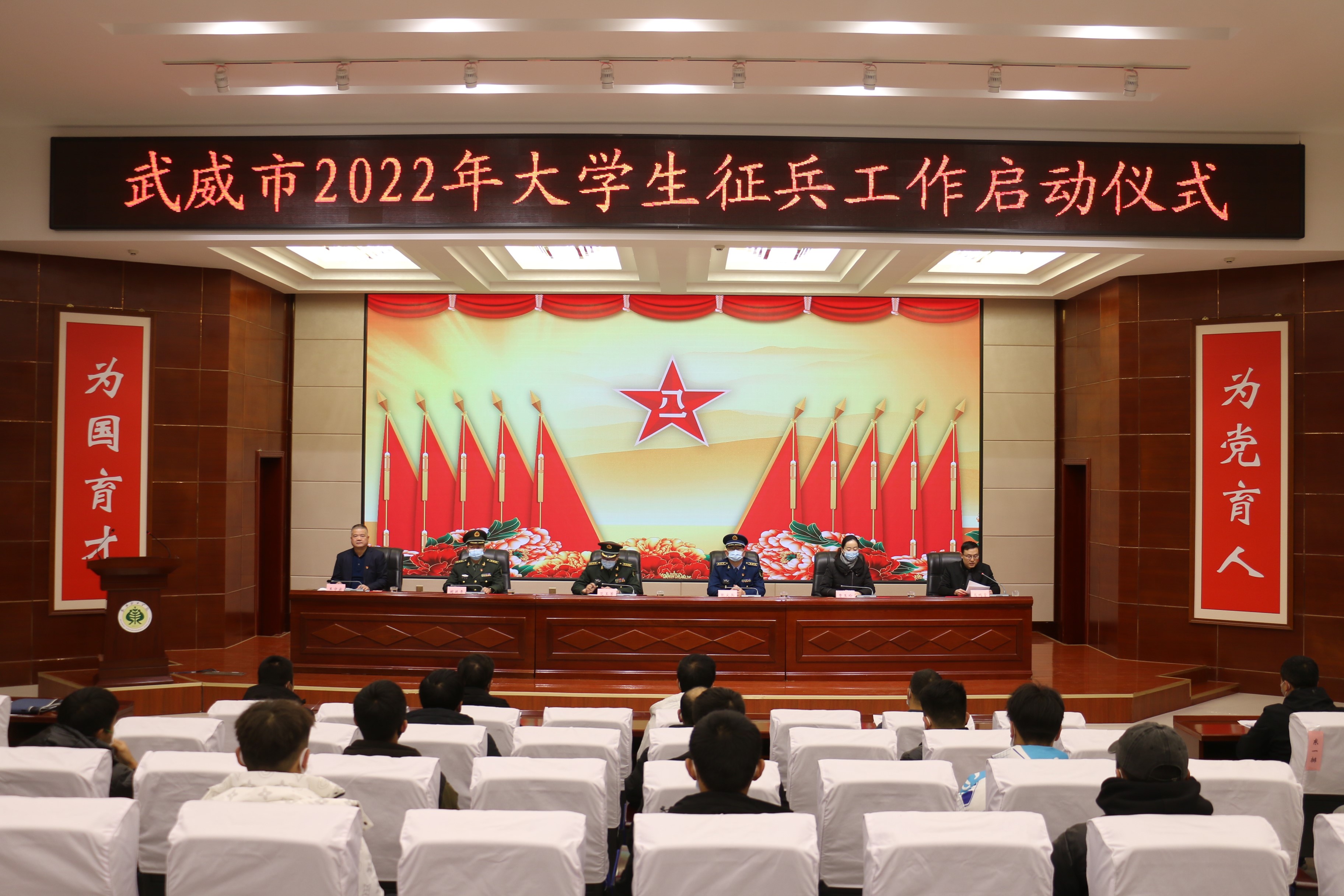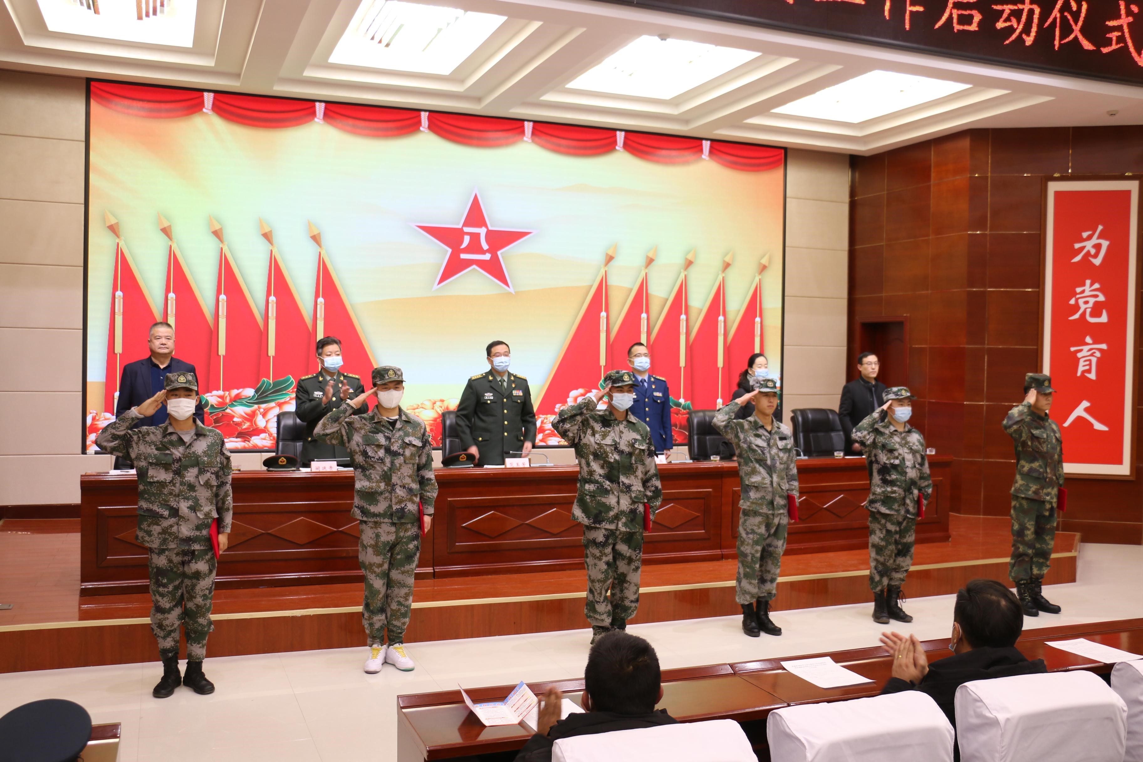 12月29日下午,武威市2022年大學(xué)生征兵工作啟動(dòng)儀式在我院舉辦。武威軍分區(qū)司令員范玉芳、武威軍分區(qū)動(dòng)員處處長(zhǎng)張尖兵、武威市教育局副局長(zhǎng)賈玉玲、涼州區(qū)人武部部長(zhǎng)闞延貴,學(xué)院黨委委員、副院長(zhǎng)王守云出席會(huì)議。學(xué)院各院系輔導(dǎo)員、2021年退役復(fù)學(xué)大學(xué)生代表和應(yīng)征報(bào)名學(xué)生代表參加了會(huì)議。會(huì)議由學(xué)生工作處負(fù)責(zé)人高鵬堂主持。會(huì)議采取線下進(jìn)行和線上同步直播的方式召開(kāi)。