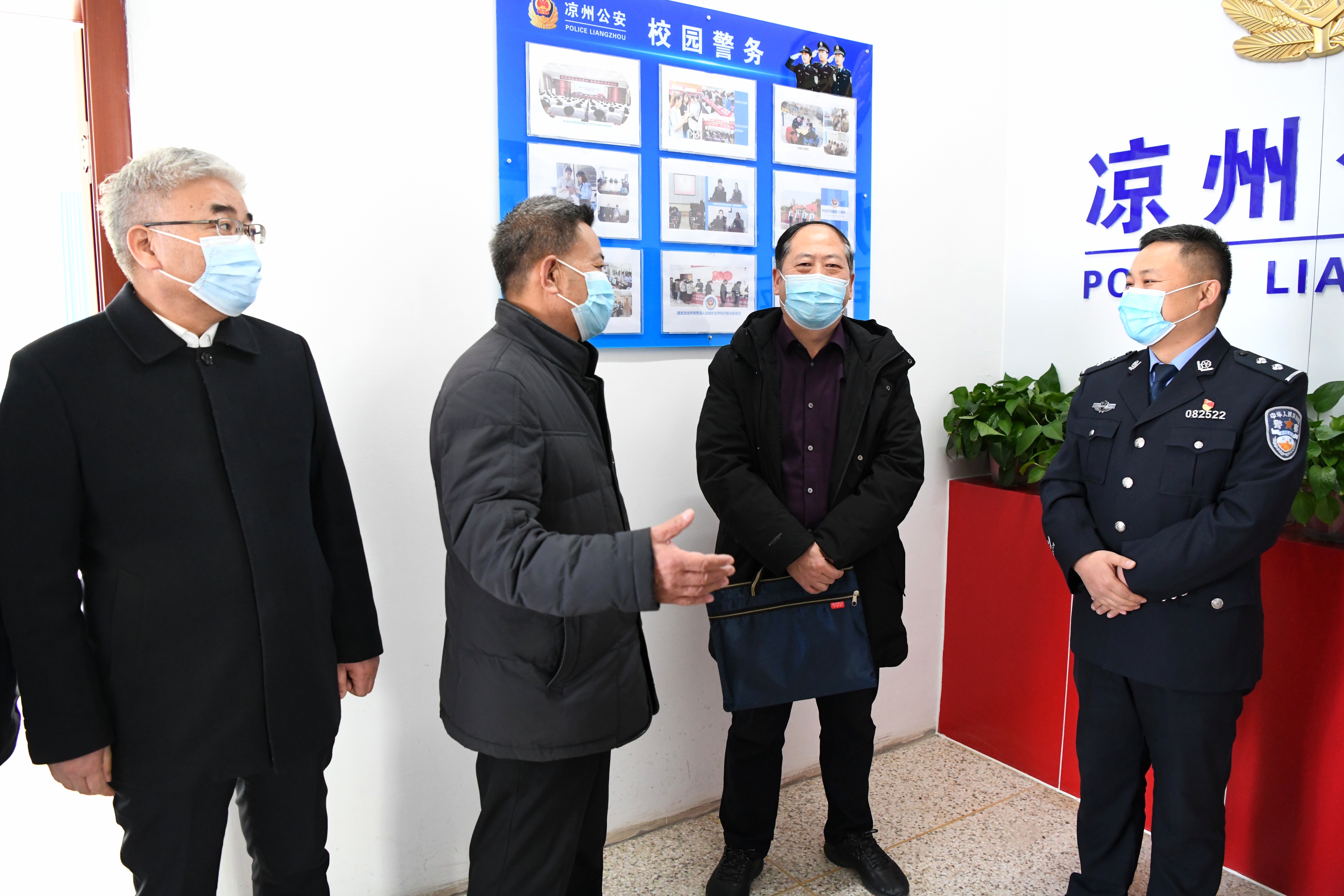 1月13日下午,平安甘肅建設(shè)工作第八考評組在省高等學(xué)校服務(wù)中心主任崔亮的帶領(lǐng)下來校實地檢查考評2021年度平安校園建設(shè)工作。市委政法委常務(wù)副書記連林中,學(xué)院黨委書記、院長趙明,黨委委員、副院長何毅,黨委委員、紀(jì)委書記、監(jiān)察專員陳曉煜,黨委委員、副院長王守云陪同檢查考評。