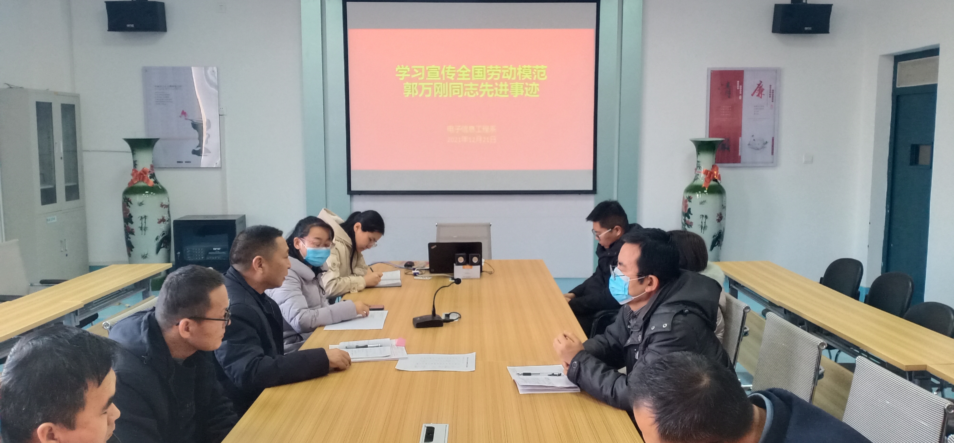 12月23日下午,電子信息工程系組織全體教師在明德樓409會議室學(xué)習(xí)全國勞動模范郭萬剛同志先進事跡。