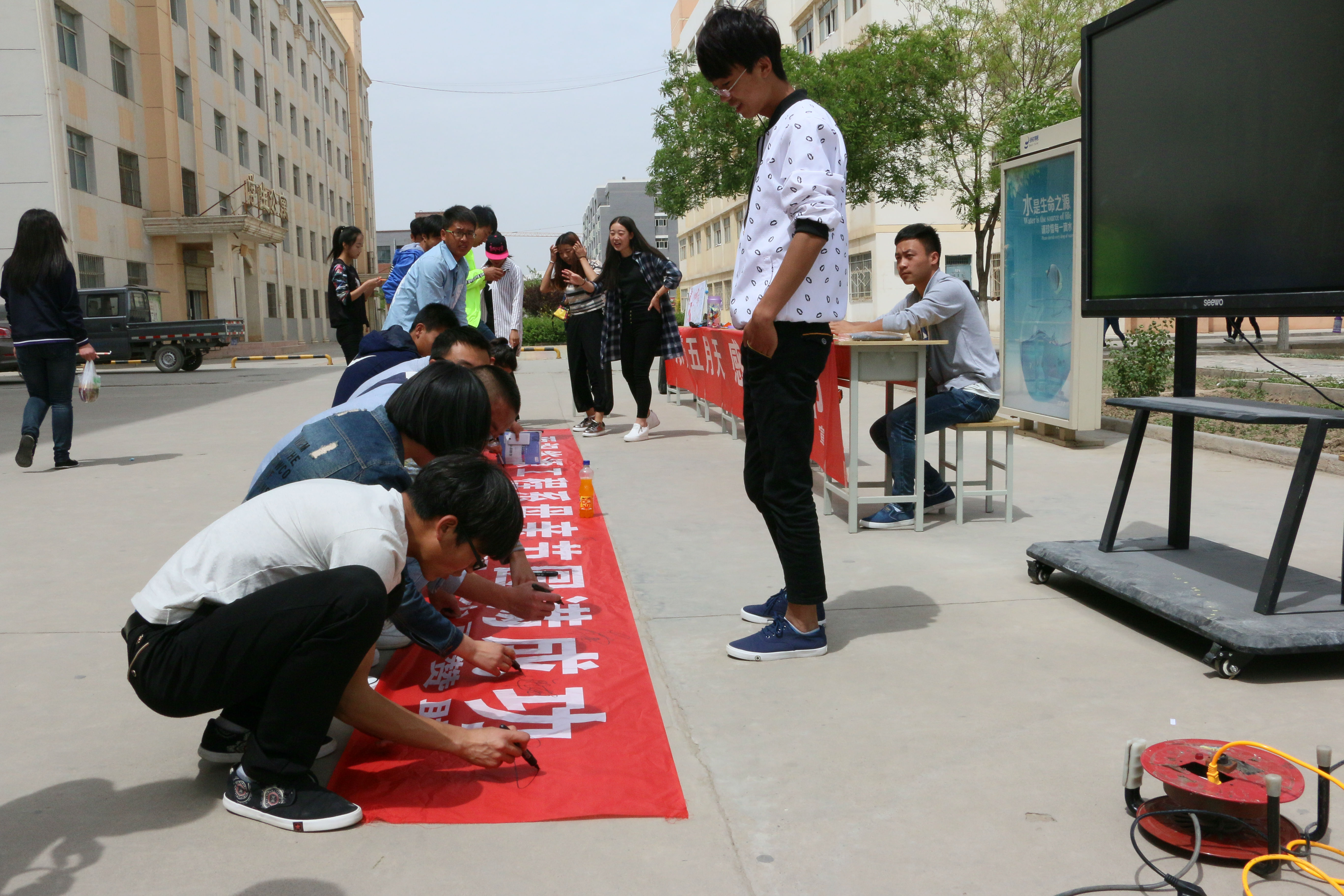 今天早晨十一點左右,能源系全體學(xué)生會成員以為這次的活動準(zhǔn)備好了一切,有母親節(jié)的海報、母親節(jié)許愿瓶、對媽媽想說的話的展板、以及自己對媽媽祝福的簽名