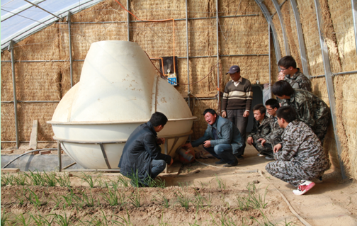 能源工程系專業(yè)教師為農(nóng)戶就沼氣池產(chǎn)生的沼渣、沼液、增溫?zé)舢a(chǎn)生的二氧化碳當(dāng)做溫室內(nèi)蔬菜生長肥料與傳統(tǒng)化肥、農(nóng)藥相比產(chǎn)生的經(jīng)濟(jì)效益進(jìn)行講解,指導(dǎo)農(nóng)戶充分利用沼氣池產(chǎn)生的沼渣、沼機(jī)及氣肥提高大棚經(jīng)濟(jì)效益。