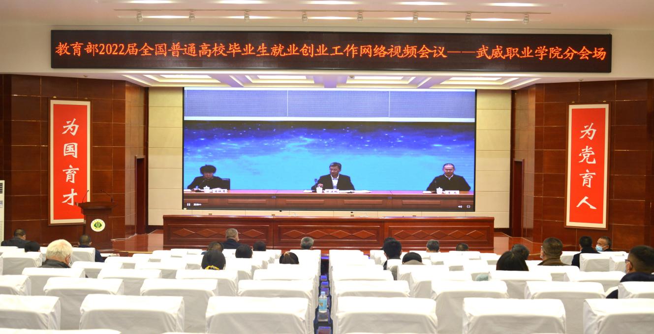 11月19日下午,教育部、人力資源社會保障部召開2022屆普通高校畢業(yè)生就業(yè)視頻會議。教育部黨組書記、部長懷進(jìn)鵬,人力資源社會保障部黨組成員、副部長李忠出席會議并講話,教育部黨組成員、副部長翁鐵慧主持會議。我院設(shè)立武威職業(yè)學(xué)院分會場,學(xué)院黨委書記、院長趙明,副院長王守云,招就處、雙創(chuàng)中心、學(xué)工處相關(guān)負(fù)責(zé)同志,各教學(xué)院系黨總支書記、主任、就業(yè)工作輔導(dǎo)員及畢業(yè)班班主任共計86人,在學(xué)院學(xué)生發(fā)展中心菁英廳集中參加網(wǎng)絡(luò)視頻會議。