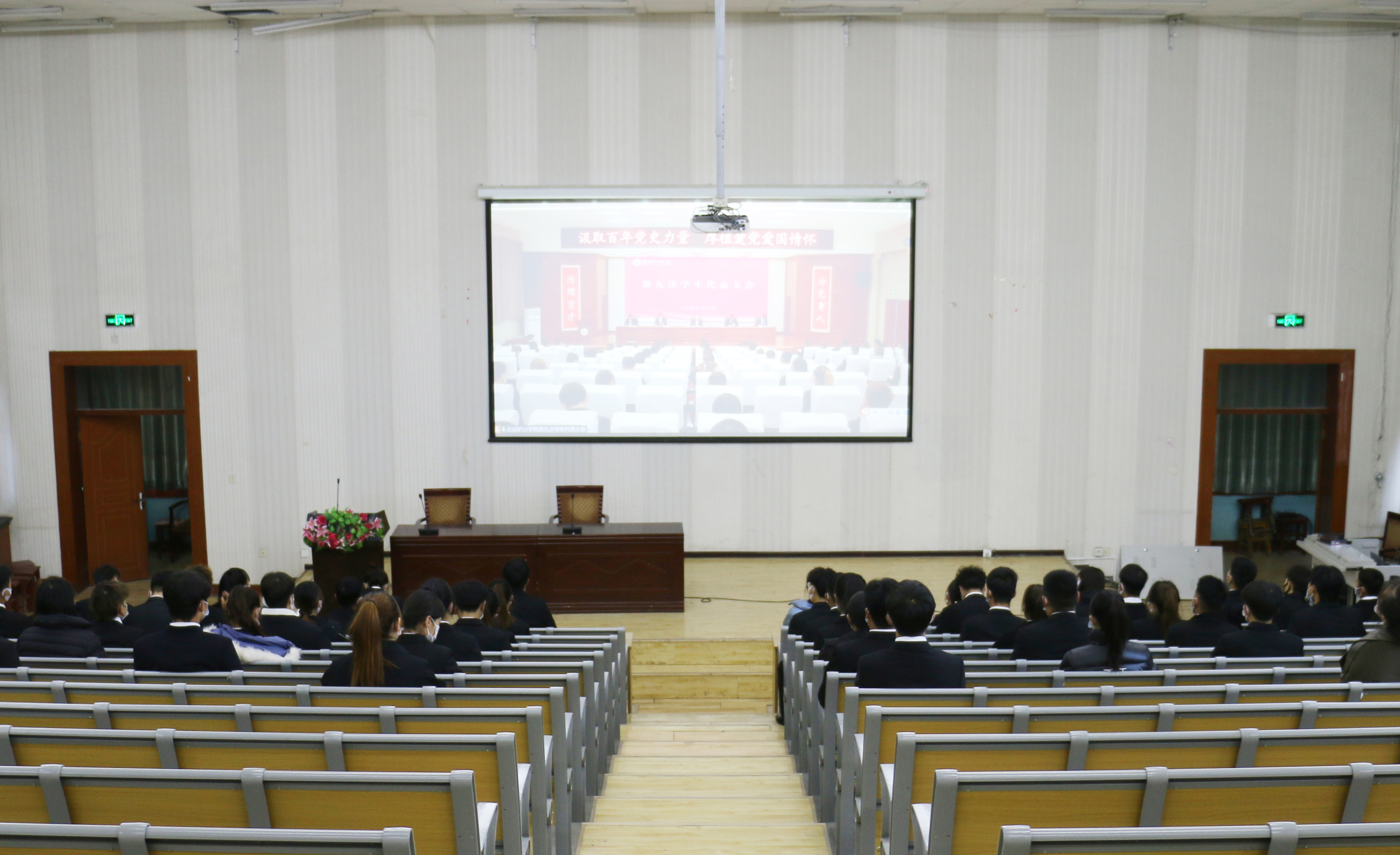 為全力做好學(xué)代會(huì)期間的疫情防控工作,會(huì)議采取“主會(huì)場(chǎng)+分會(huì)場(chǎng)”視頻會(huì)議的形式召開,主會(huì)場(chǎng)設(shè)在學(xué)生發(fā)展中心菁英廳,分會(huì)場(chǎng)設(shè)在尚德樓正德廳。