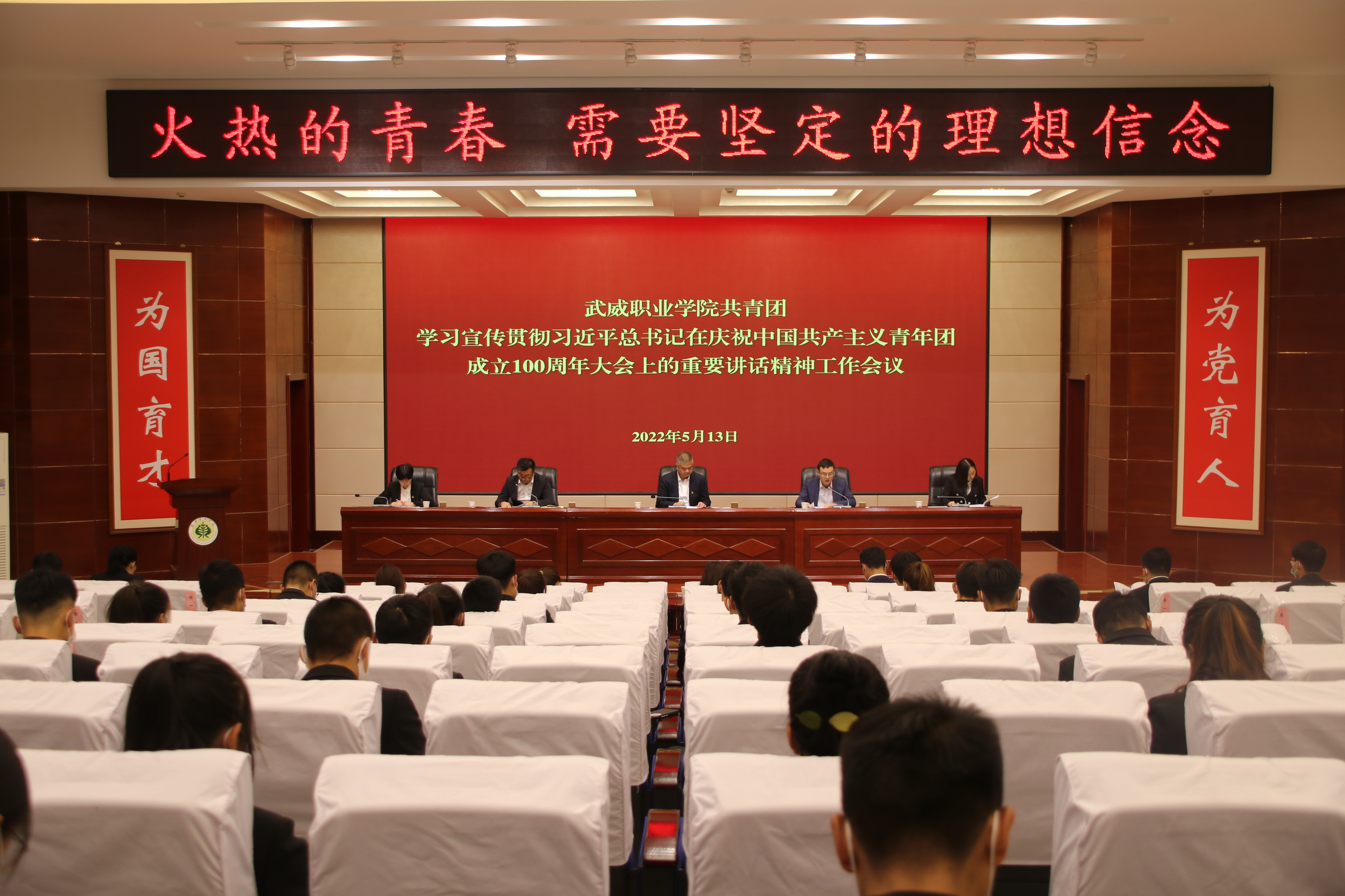 會(huì)議指出,學(xué)習(xí)宣傳貫徹習(xí)近平總書(shū)記在慶祝中國(guó)共青團(tuán)成立100周年大會(huì)上的重要講話精神,是學(xué)校各級(jí)團(tuán)組織和廣大團(tuán)員青年當(dāng)前和今后一段時(shí)期的首要政治任務(wù),要堅(jiān)持與黨同心、跟黨奮斗,學(xué)深悟透總書(shū)記重要講話精神,自覺(jué)踐行新時(shí)代共青團(tuán)的使命任務(wù),培養(yǎng)純潔擔(dān)當(dāng)?shù)膱F(tuán)員隊(duì)伍,成為走在時(shí)代前列的先進(jìn)組織,把學(xué)習(xí)成果體現(xiàn)到 “雙高計(jì)劃”學(xué)校建設(shè)和武威職業(yè)技術(shù)大學(xué)申辦工作的具體行動(dòng)上,以優(yōu)異成績(jī)迎接黨的二十大勝利召開(kāi)。