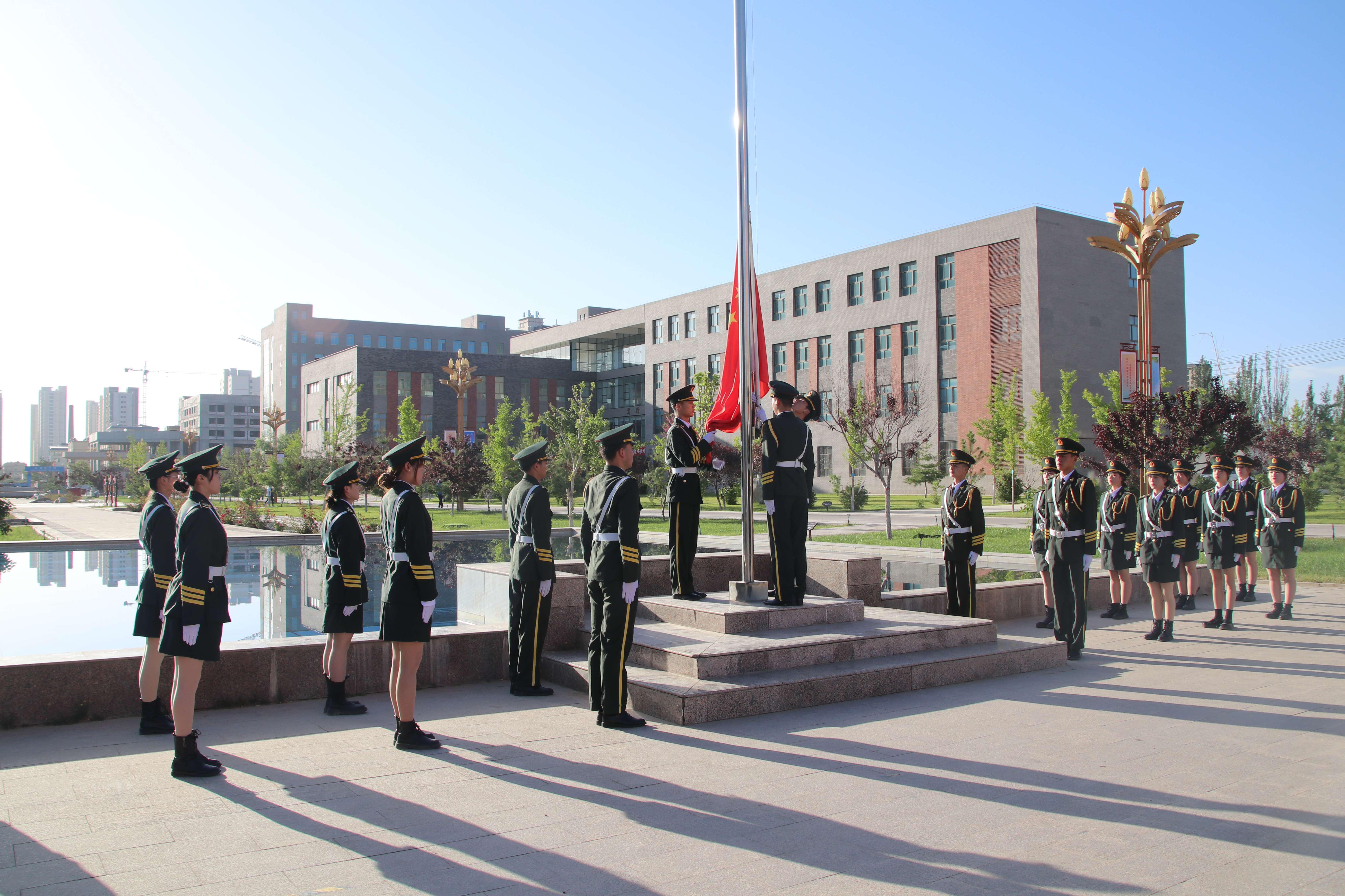 迎著朝陽(yáng),五星紅旗在國(guó)旗護(hù)衛(wèi)隊(duì)的護(hù)送下緩緩入場(chǎng),昂昂國(guó)歌奏響,國(guó)旗迎風(fēng)飄揚(yáng),全場(chǎng)師生齊唱國(guó)歌。學(xué)生代表在國(guó)旗下致獻(xiàn)詞,對(duì)黨許下青春的誓言,獻(xiàn)詞之后舉行了嚴(yán)肅莊重的重溫入團(tuán)誓詞儀式,增強(qiáng)了共青團(tuán)員的組織光榮感和歸屬感,激發(fā)了團(tuán)員青年的使命感和責(zé)任感。最后,全體團(tuán)員青年齊唱《共青團(tuán)團(tuán)歌》,用響亮的歌聲表達(dá)建團(tuán)百年再出發(fā)的祝福,現(xiàn)場(chǎng)愛國(guó)熱情持續(xù)高漲。