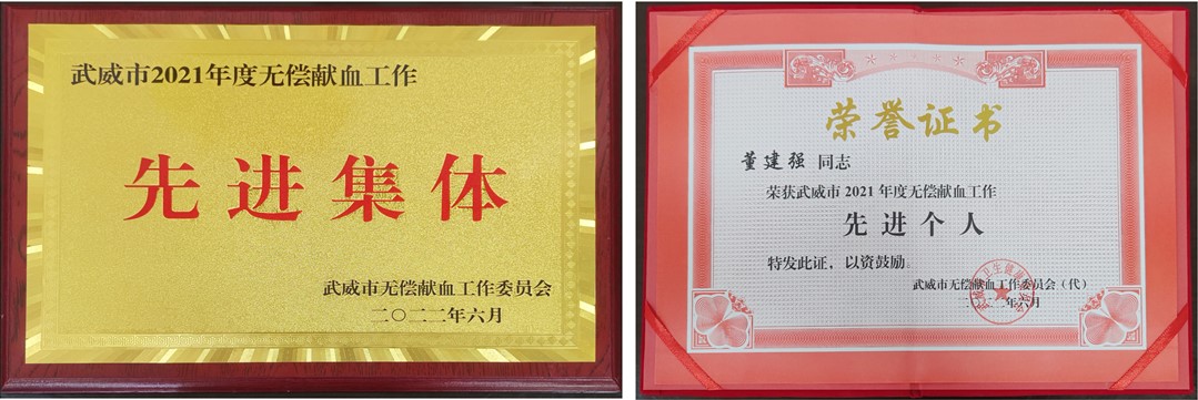 我校無償獻血工作受到武威市表彰