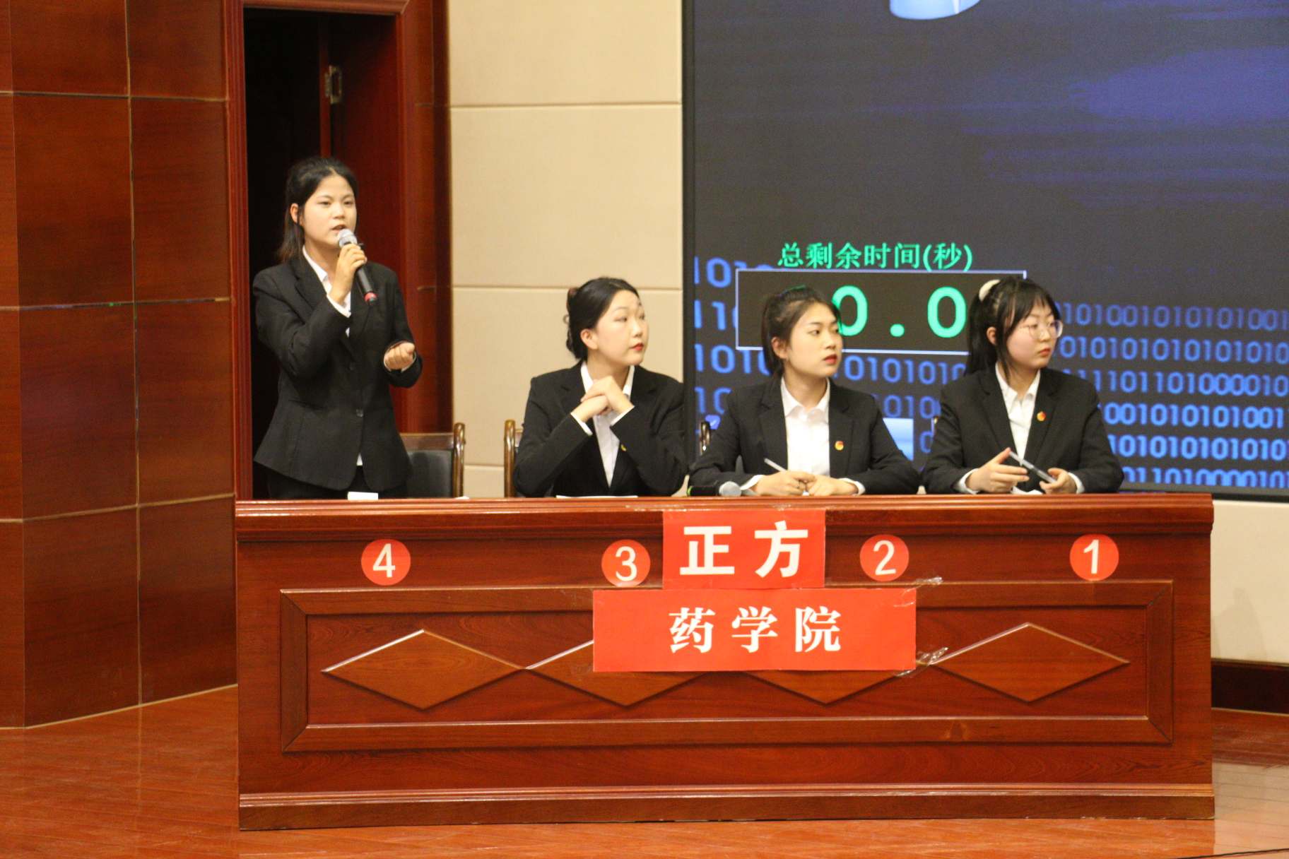 經過11場次的比賽,藥學院代表隊和護理學院代表隊進入最后決賽。決賽現(xiàn)場,正反雙方針對誠信主要靠“他律”還是主要靠“自律”拉開激烈交戰(zhàn)。雙方辯手圍繞辯題你來我往、侃侃而談、針鋒相對,卻不失風度;立論階段,旁征博引,攻辯階段雙方辯手“激烈廝殺”;自由辯論環(huán)節(jié),辯論雙方的金句妙言、據理力爭、滔滔不絕將比賽氣氛推向高潮,贏得在場聽眾的陣陣掌聲。