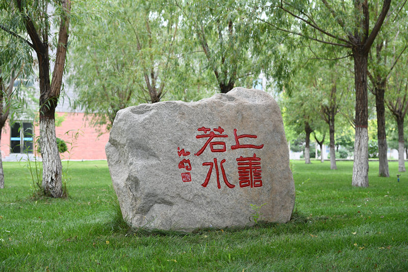 上善若水 ??沈鵬題 ??位于3 號學(xué)生公寓樓南側(cè)
