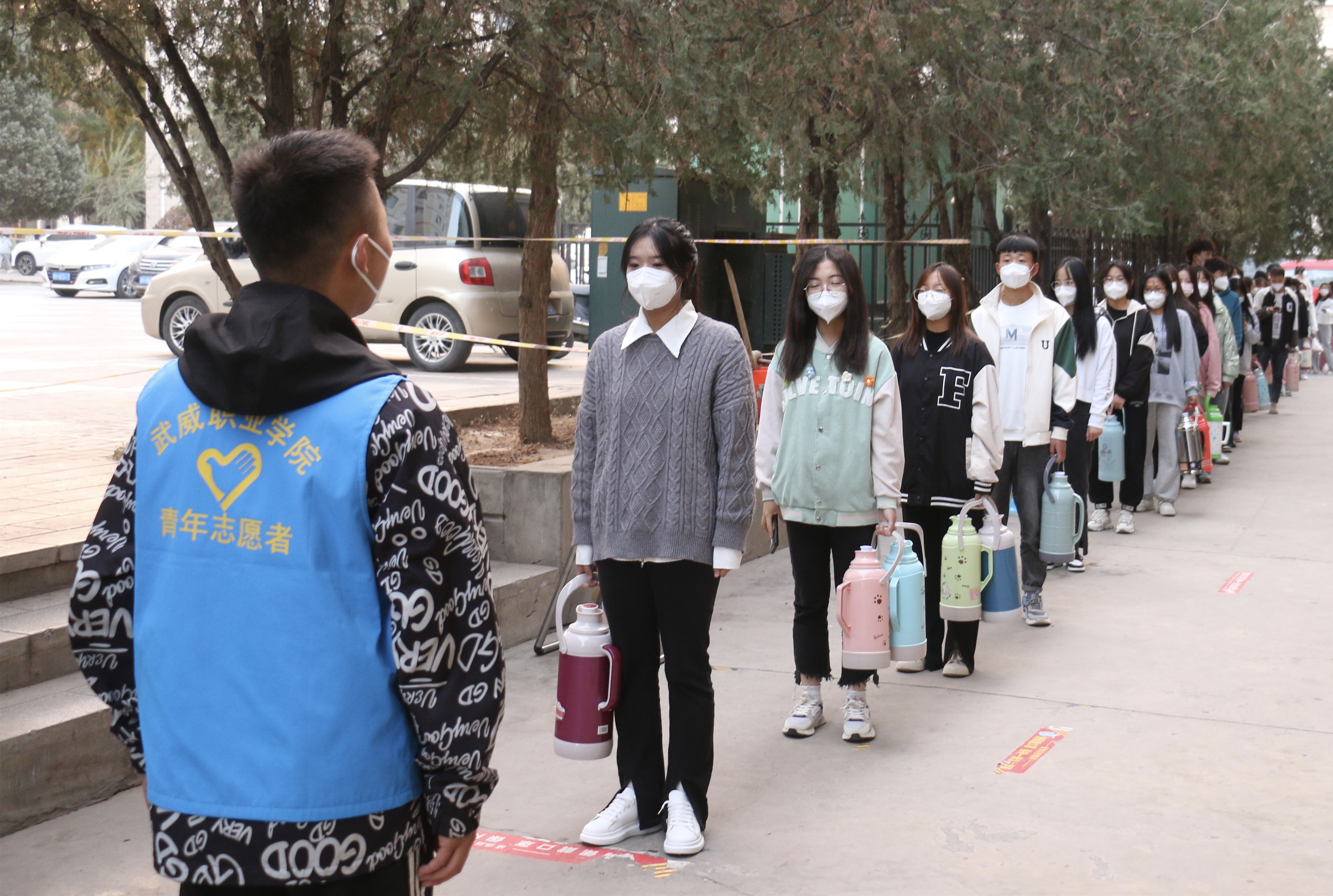 “您好,請(qǐng)測(cè)量體溫、掃場(chǎng)所碼。”“請(qǐng)佩戴好口罩,有序排隊(duì)……”校學(xué)生會(huì)的陶玲在學(xué)校食堂門(mén)口值班時(shí)不停地提醒著進(jìn)出打飯的同學(xué)們,這也是她參加校園疫情防控以來(lái)每天講得最多的話(huà)。自10月13日涼州區(qū)實(shí)施臨時(shí)管控以來(lái),學(xué)校各學(xué)生組織聞令而動(dòng),身穿“藍(lán)馬甲”積極投身校園疫情防控一線,用奉獻(xiàn)溫暖了這個(gè)秋天。