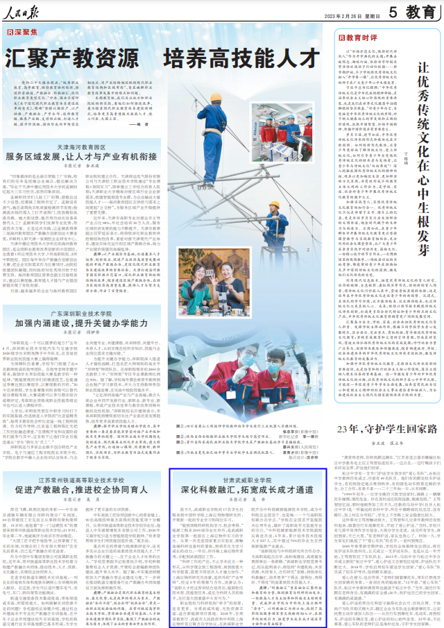 武威職業(yè)學(xué)院深化科教融匯,拓寬成長成才通道獲人民日報(bào)宣傳報(bào)道