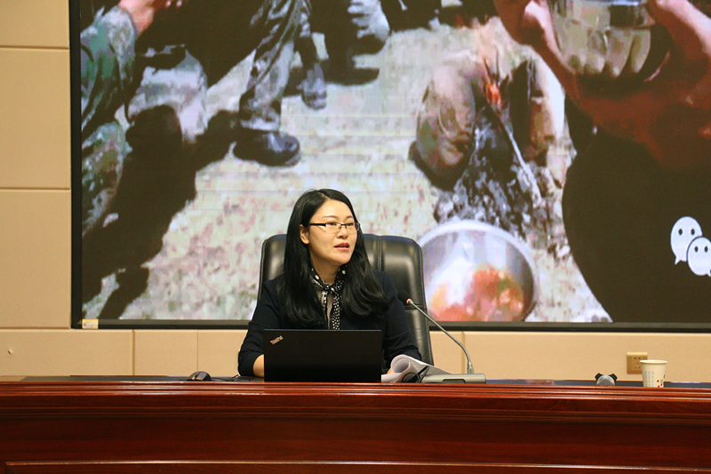 “對(duì)英雄的敬仰從不會(huì)隨著歷史的遠(yuǎn)去而減淡,祁發(fā)寶團(tuán)長(zhǎng)的英雄事跡,點(diǎn)燃了百萬(wàn)武威兒女的心?!笔腥诿襟w中心新媒體中心主任張尚梅將“英雄團(tuán)長(zhǎng)”祁發(fā)寶衛(wèi)國(guó)戍邊先進(jìn)事跡娓娓道來(lái)。當(dāng)她講到“祁發(fā)寶左前額骨破裂,卻一把扯掉頭上的繃帶,想起身往前沖”的時(shí)候,聆聽講座的師生無(wú)不感動(dòng)。