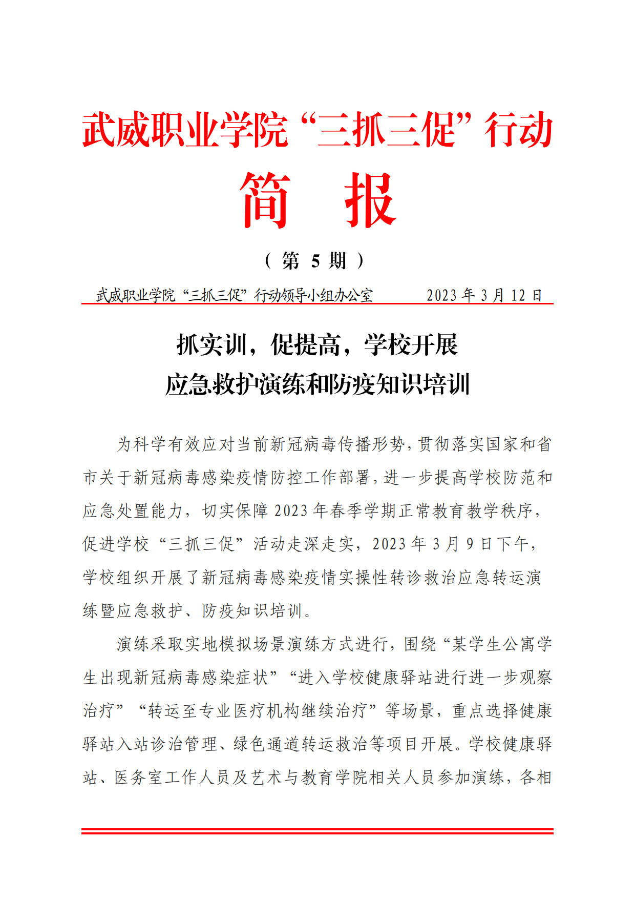 簡報第5期:抓實訓,促提高,學校開展應急救護演練和防疫知識培訓