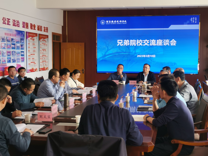 3月10日,學(xué)校黨委副書記翟存祥,黨委委員、副校長張開禮一行赴酒泉職業(yè)技術(shù)學(xué)院,就“雙高計劃”學(xué)校建設(shè)、本科層次職業(yè)學(xué)校申辦、產(chǎn)教融合、社會服務(wù)等工作進行學(xué)習(xí)交流。酒泉職業(yè)技術(shù)學(xué)院黨委副書記許軍及相關(guān)部門負(fù)責(zé)人陪同考察,并組織召開交流座談會。