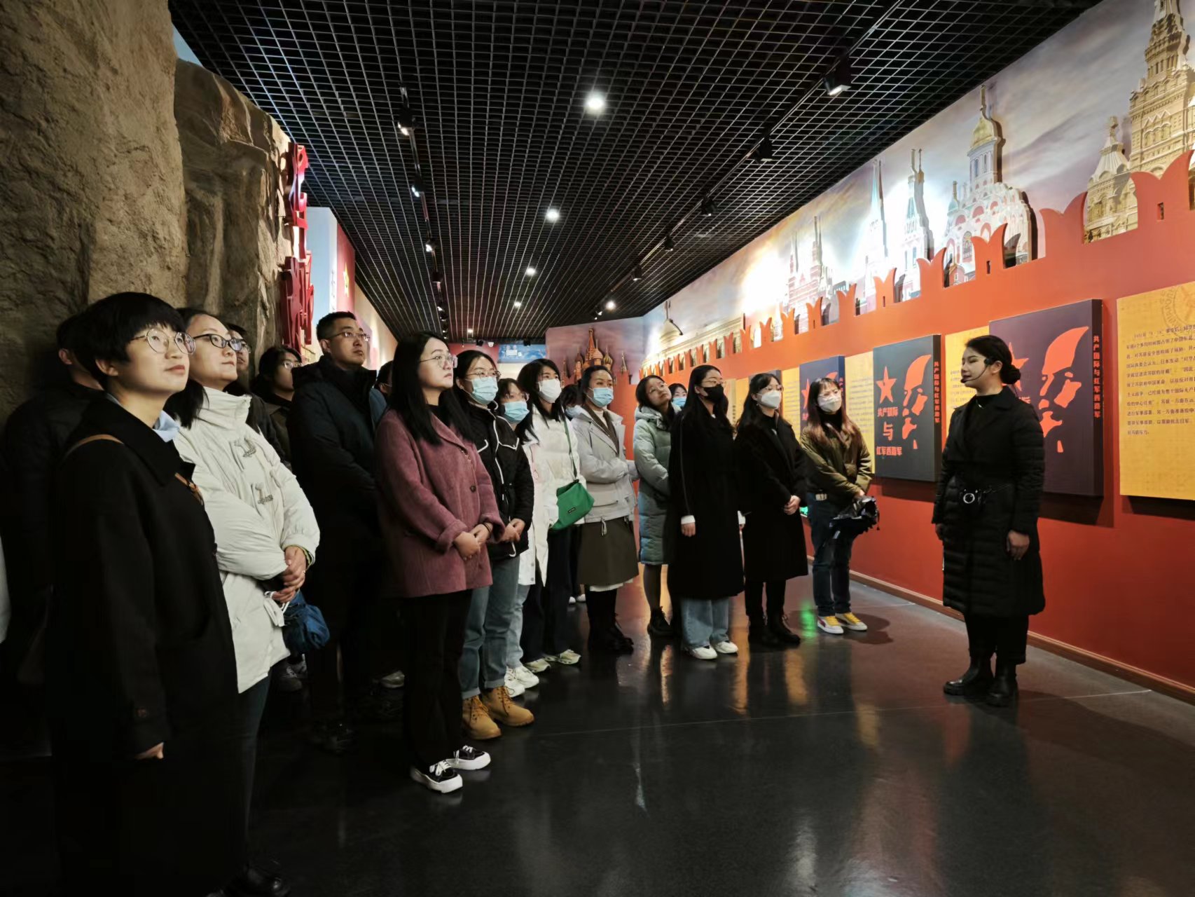 巍峨聳立的烈士紀念碑在皚皚白雪的襯托下,顯得格外莊嚴肅穆。同學們在紀念碑前認真聆聽講解員講解關于紅軍西路軍的英勇戰(zhàn)斗故事,向中國工農(nóng)紅軍西路軍九軍烈士墓敬獻鮮花,一同瞻仰了烈士陵墓,表達對革命先烈的敬仰和懷念之情。隨后,同學們一起參觀了古浪戰(zhàn)役紀念館,了解那段波瀾壯闊的崢嶸歲月,感受紅軍西路軍不畏艱險、浴血奮戰(zhàn)的英雄主義氣概,為黨為人民英勇獻身的精神。