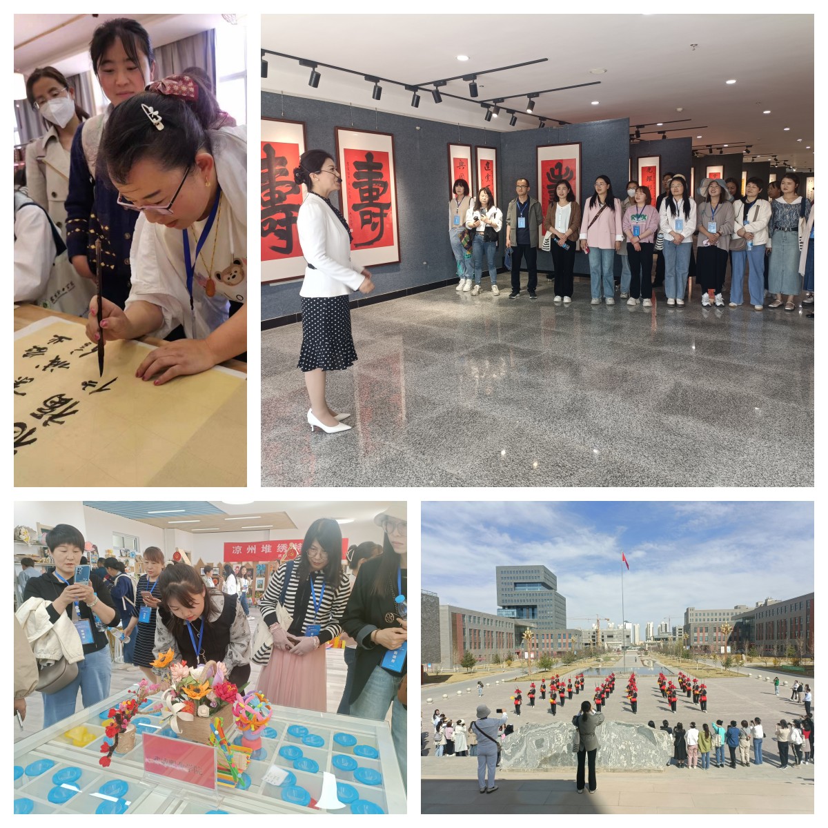 16日下午,培訓(xùn)班組織學(xué)員觀摩學(xué)校學(xué)前教育專業(yè)實(shí)訓(xùn)中心、紅色文化藝術(shù)館、傳統(tǒng)文化體驗(yàn)中心、非遺體驗(yàn)中心等場館。在講解老師的帶領(lǐng)下,學(xué)員們有感而發(fā),唱紅歌、彈鋼琴、練書法,使紅色教育理念在觀摩中得以升華,現(xiàn)場氣氛激情熱烈,學(xué)員們對學(xué)校的發(fā)展贊嘆不已,隨后,全體學(xué)員觀看涼州攻鼓子表演,并合影留念。