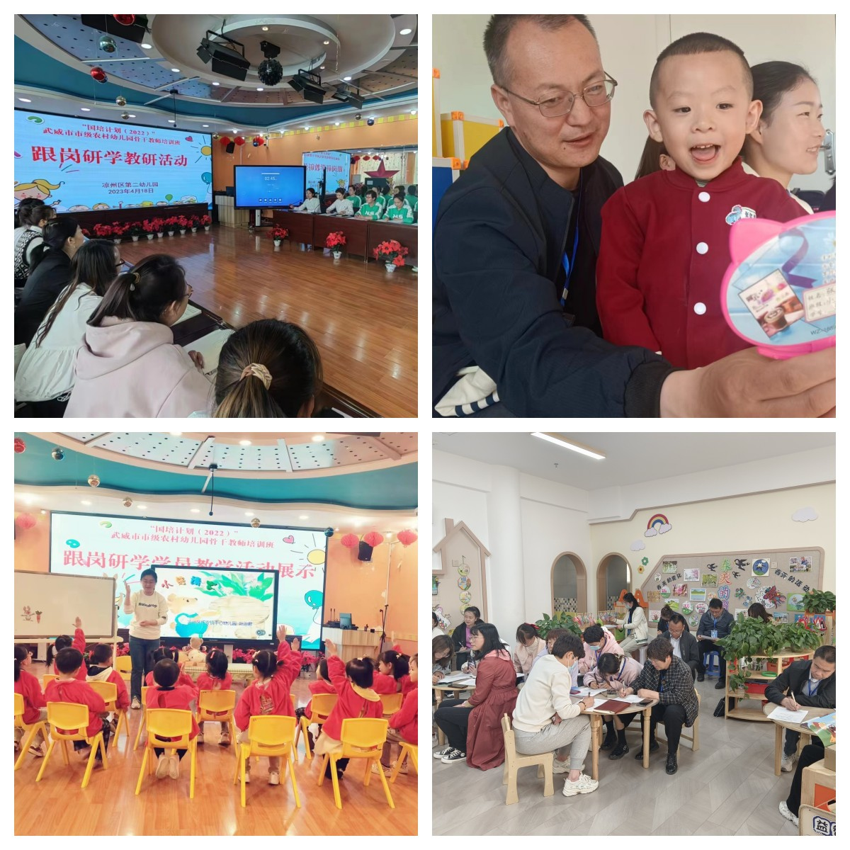 在跟崗研修期間,學(xué)員們分組進(jìn)入武威市實(shí)驗(yàn)幼兒園、武威市第二實(shí)驗(yàn)幼兒園、涼州區(qū)第一、第二、第四幼兒園進(jìn)行跟崗學(xué)習(xí)。走進(jìn)幼兒園,感受優(yōu)美的園所環(huán)境和先進(jìn)辦園理念,學(xué)習(xí)幼兒園班級(jí)建設(shè)、區(qū)角打造、環(huán)境布置、課程設(shè)置等。走進(jìn)課堂,觀摩優(yōu)質(zhì)示范課,同課異構(gòu)課,體智能特色課,開展聽課、講課、評(píng)課、議課、研討交流活動(dòng),體驗(yàn)先進(jìn)的學(xué)前教育理念,增強(qiáng)了全體學(xué)員扎根學(xué)前教育的熱情和信念,開拓的學(xué)員眼界,提升了業(yè)務(wù)能力。4月21日,各幼兒園開展跟崗研修總結(jié)活動(dòng),導(dǎo)師學(xué)員談收獲,談體會(huì),在團(tuán)隊(duì)共進(jìn)中內(nèi)化學(xué)習(xí)內(nèi)容。