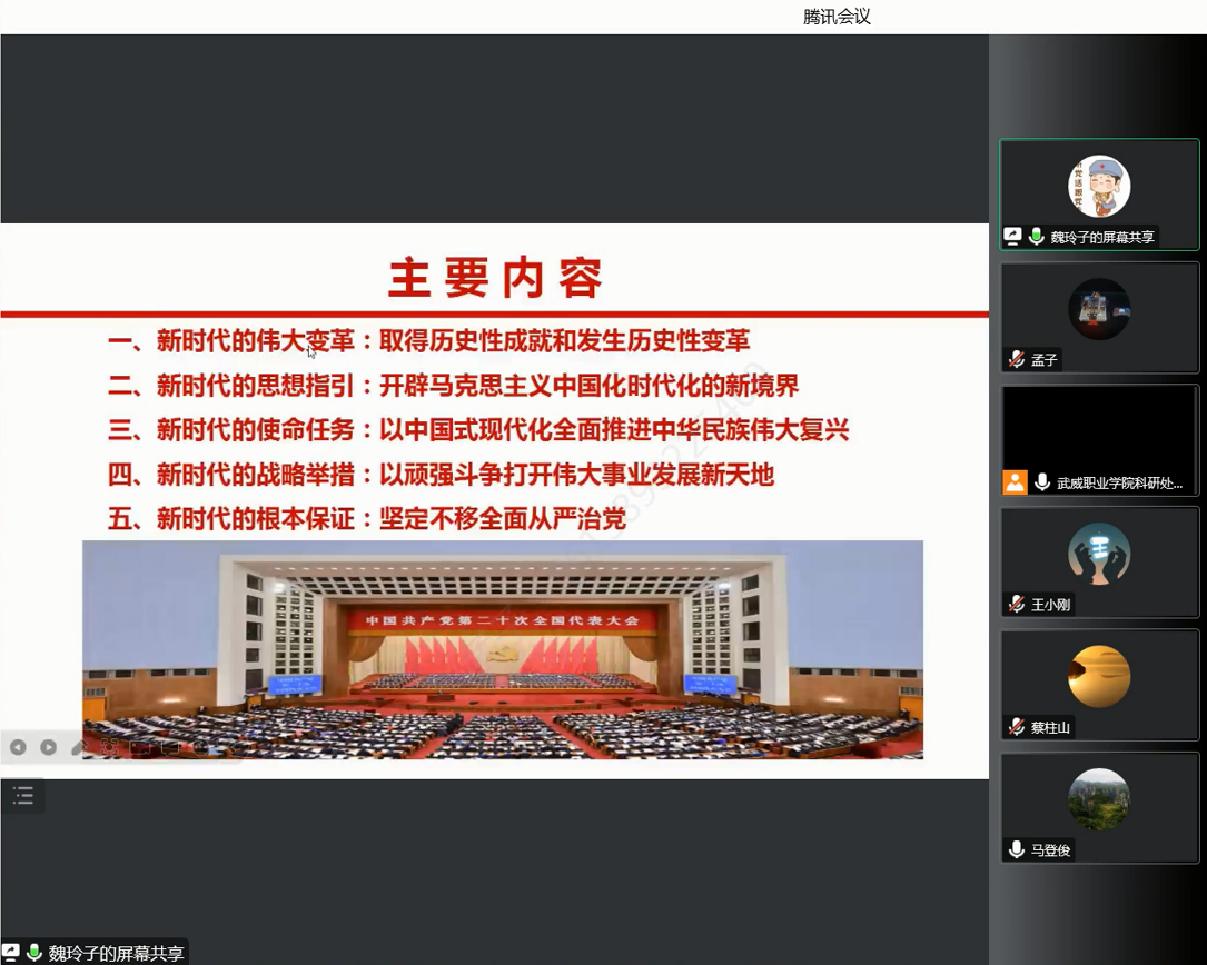 12月23日,按照學(xué)校黨委工作部署,教學(xué)管理第二黨支部組織開展黨的二十大精神宣講宣傳活動,會議由黨支部書記董鵬主持,邀請了學(xué)校黨的二十大精神宣講團(tuán)成員魏玲,支部全體黨員和入黨積極分子通過網(wǎng)絡(luò)視頻參加學(xué)習(xí),會議精神宣傳至支部全體人員。