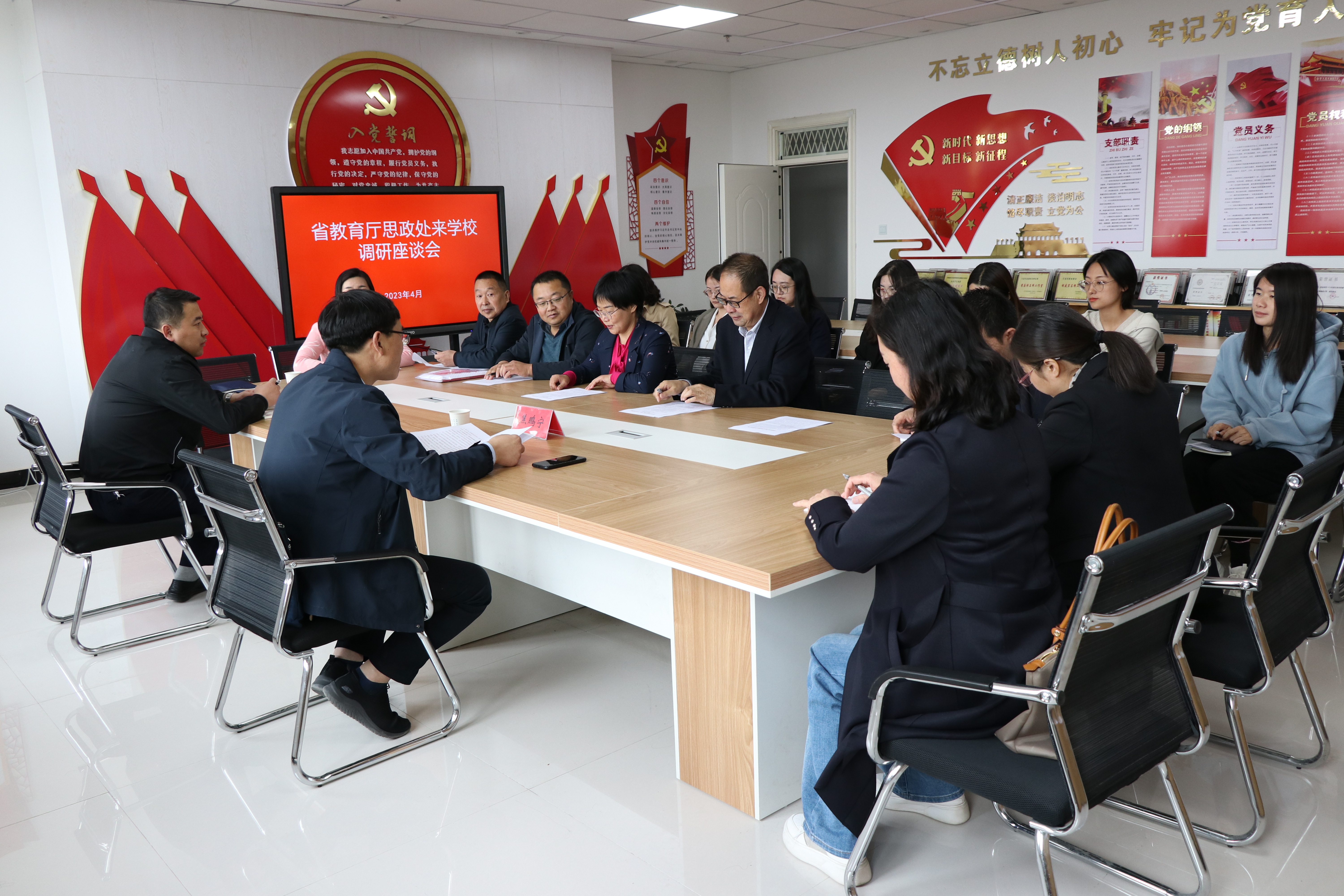 4月26日下午,省教育廳思政處處長焦鵬寧一行來學(xué)校調(diào)研指導(dǎo)工作。學(xué)校黨委副書記翟存祥,黨委委員、副校長何毅陪同調(diào)研。