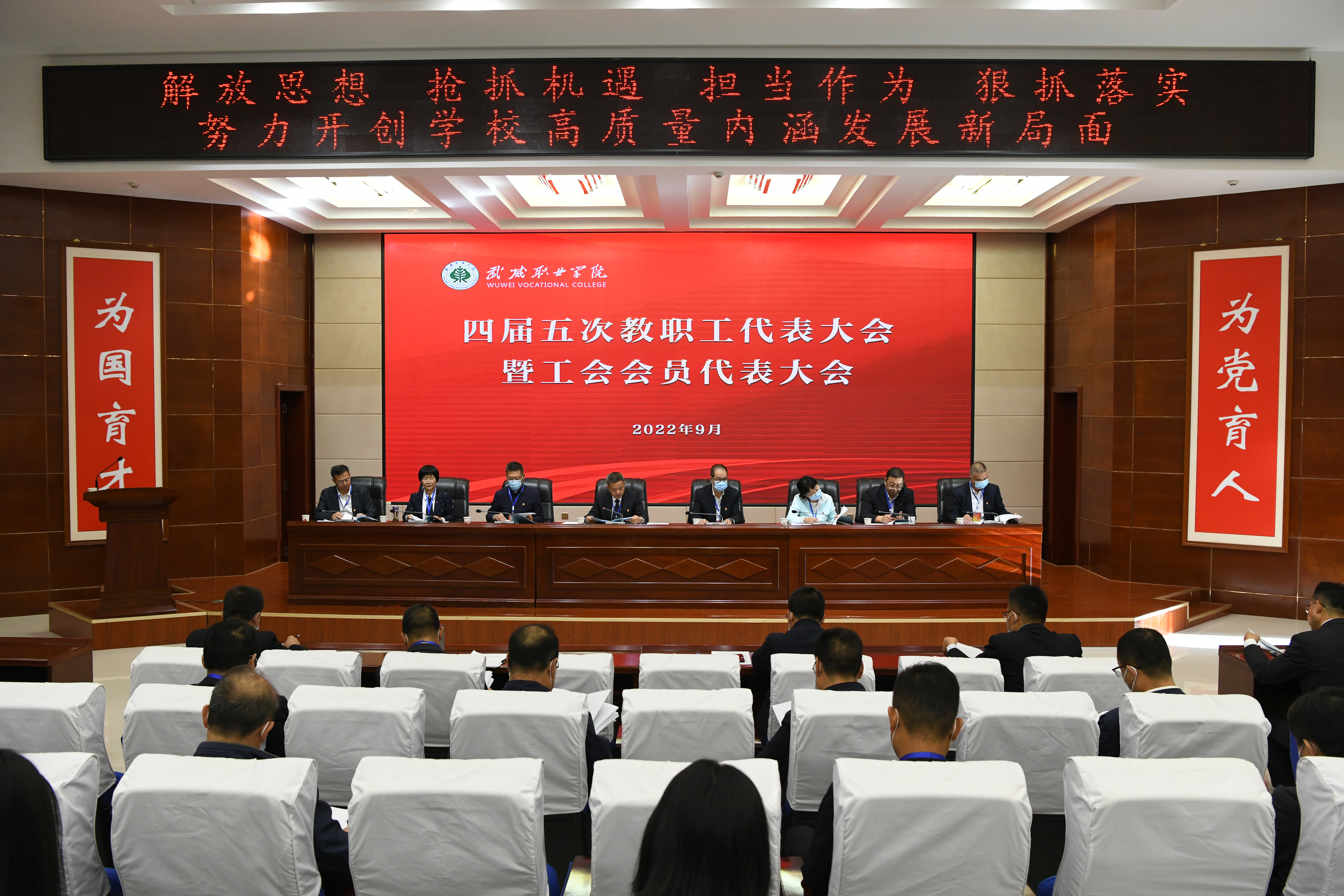 大會在雄壯的國歌聲中開幕,黨委書記、校長趙明作了題為《解放思想 搶抓機(jī)遇 擔(dān)當(dāng)作為 狠抓落實 努力開創(chuàng)學(xué)校高質(zhì)量發(fā)展新局面》的工作報告,系統(tǒng)回顧了四屆四次教職工(會員)代表大會以來學(xué)校事業(yè)發(fā)展所取得的顯著成績,分析了學(xué)校當(dāng)前面臨的形勢與存在的問題,明確了今后工作思路和主要工作舉措。副校長張開禮作了關(guān)于修訂《武威職業(yè)學(xué)院章程》的情況說明。大會以書面形式審議了《學(xué)校財務(wù)工作報告》《工會工作報告》《工會經(jīng)費審查報告》。
