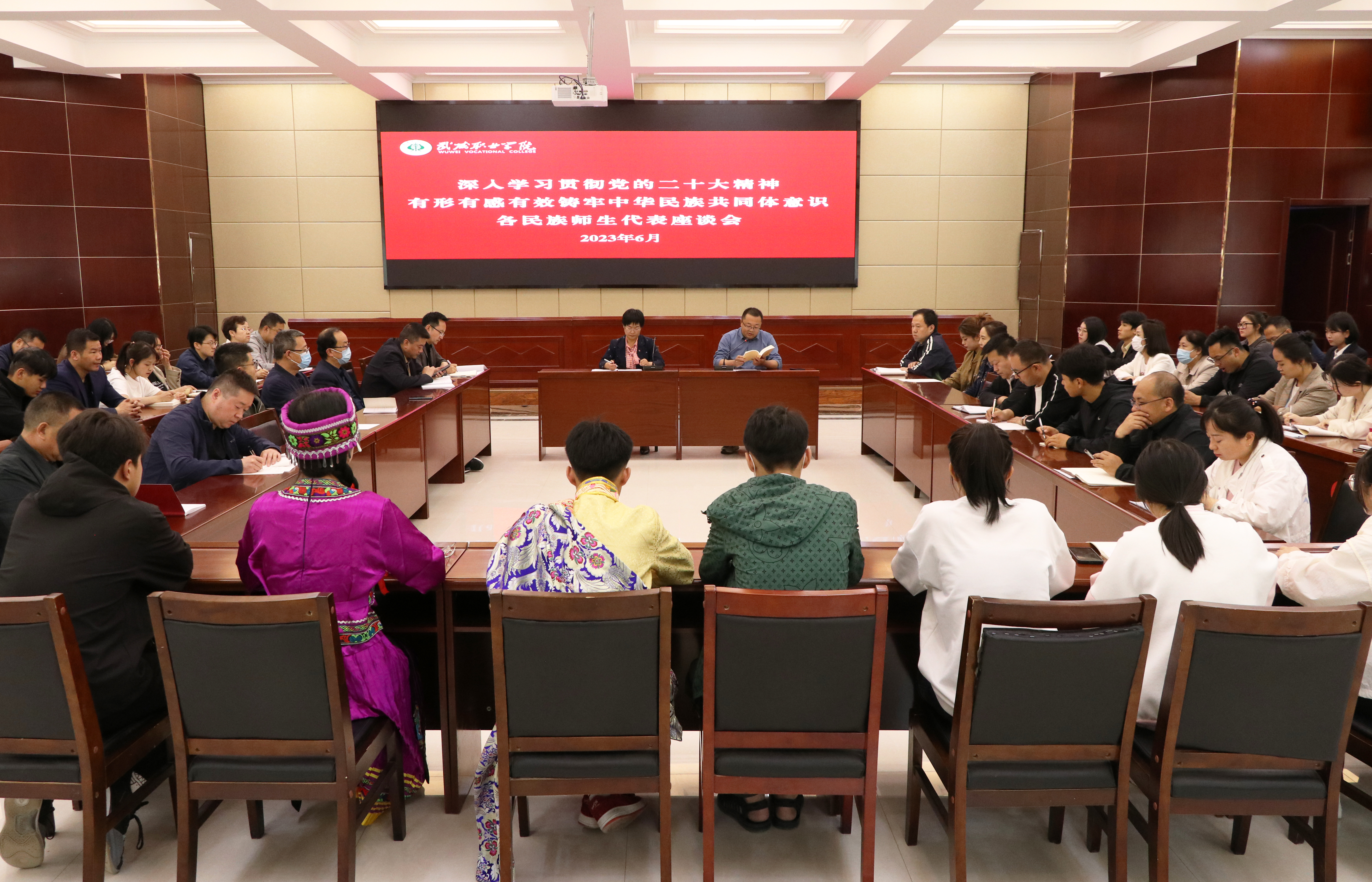 6月2日,學(xué)校召開以“學(xué)習(xí)貫徹黨的二十大精神? 有形有感有效鑄牢中華民族共同體意識(shí)”為主題的各民族師生代表座談會(huì),學(xué)校漢族、藏族、回族、土族、滿族、苗族等13個(gè)民族師生代表60多人參加了座談會(huì)。學(xué)校黨委委員、副校長(zhǎng)何毅出席會(huì)議并講話,座談會(huì)由宣傳統(tǒng)戰(zhàn)部負(fù)責(zé)人魏全民主持。