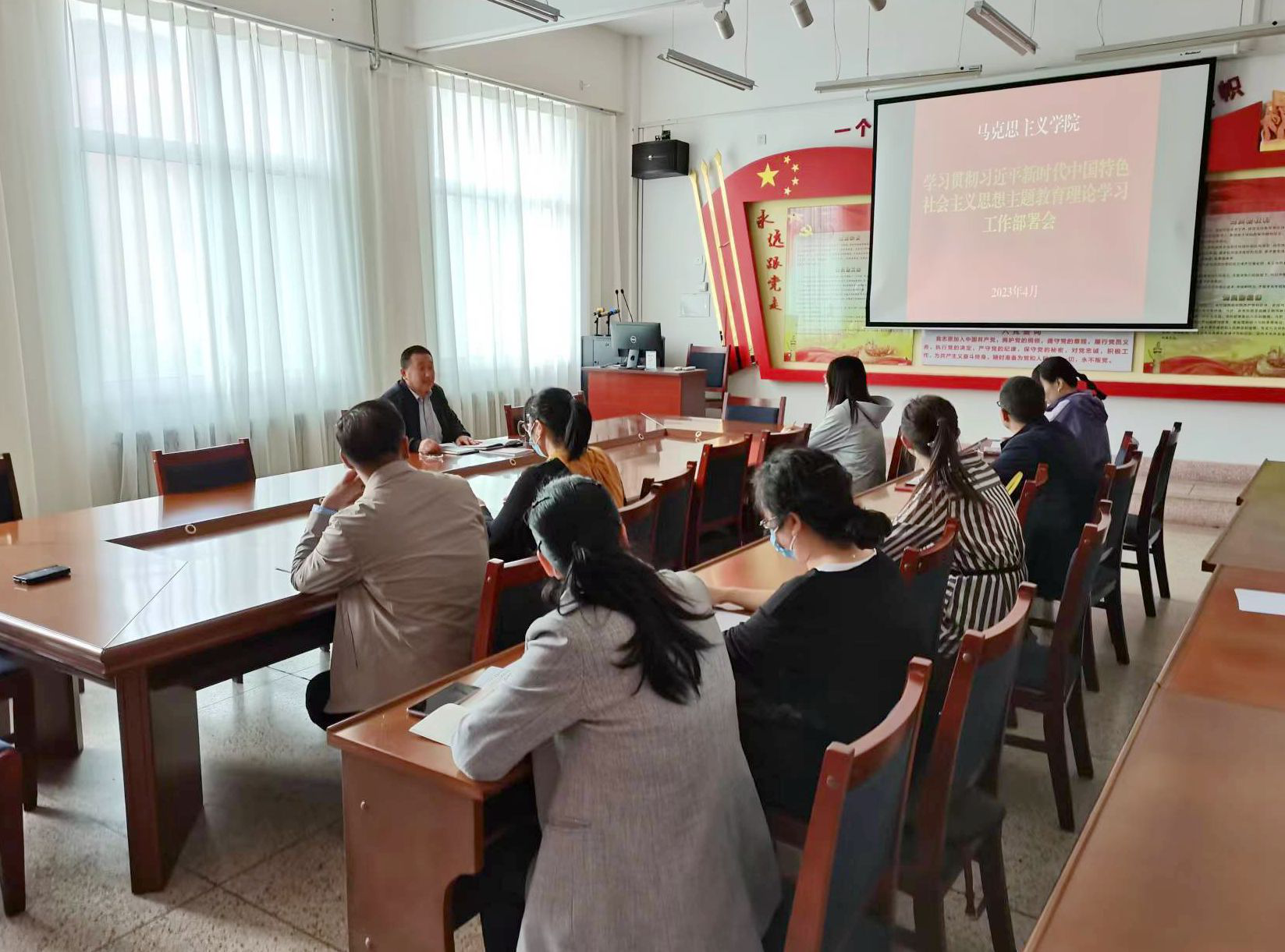 馬克思主義學院積極響應,迅速啟動,第一時間召開了主題教育動員部署會,對學院開展學習貫徹習近平新時代中國特色社會主義思想主題教育進行安排部署,始終堅持高標準、嚴要求,扎實開展學習,制定集體學習計劃表和個人自學表,明確學習內(nèi)容、時間安排、學習方式,組織領導等。以深入學習習近平新時代中國特色社會主義思想為主要內(nèi)容,以提升思政課教師政治能力為重點,以深化黨員理論武裝為抓手,以全面提高教學能力為著力點,引導黨員讀原著學原文悟原理,認真研讀黨的二十大報告和黨章,學習《習近平著作選讀》《習近平新時代中國特色社會主義思想專題摘編》等指定學習材料,全面、系統(tǒng)、準確領會和把握習近平新時代中國特色社會主義思想的科學體系、核心要義、實踐要求。