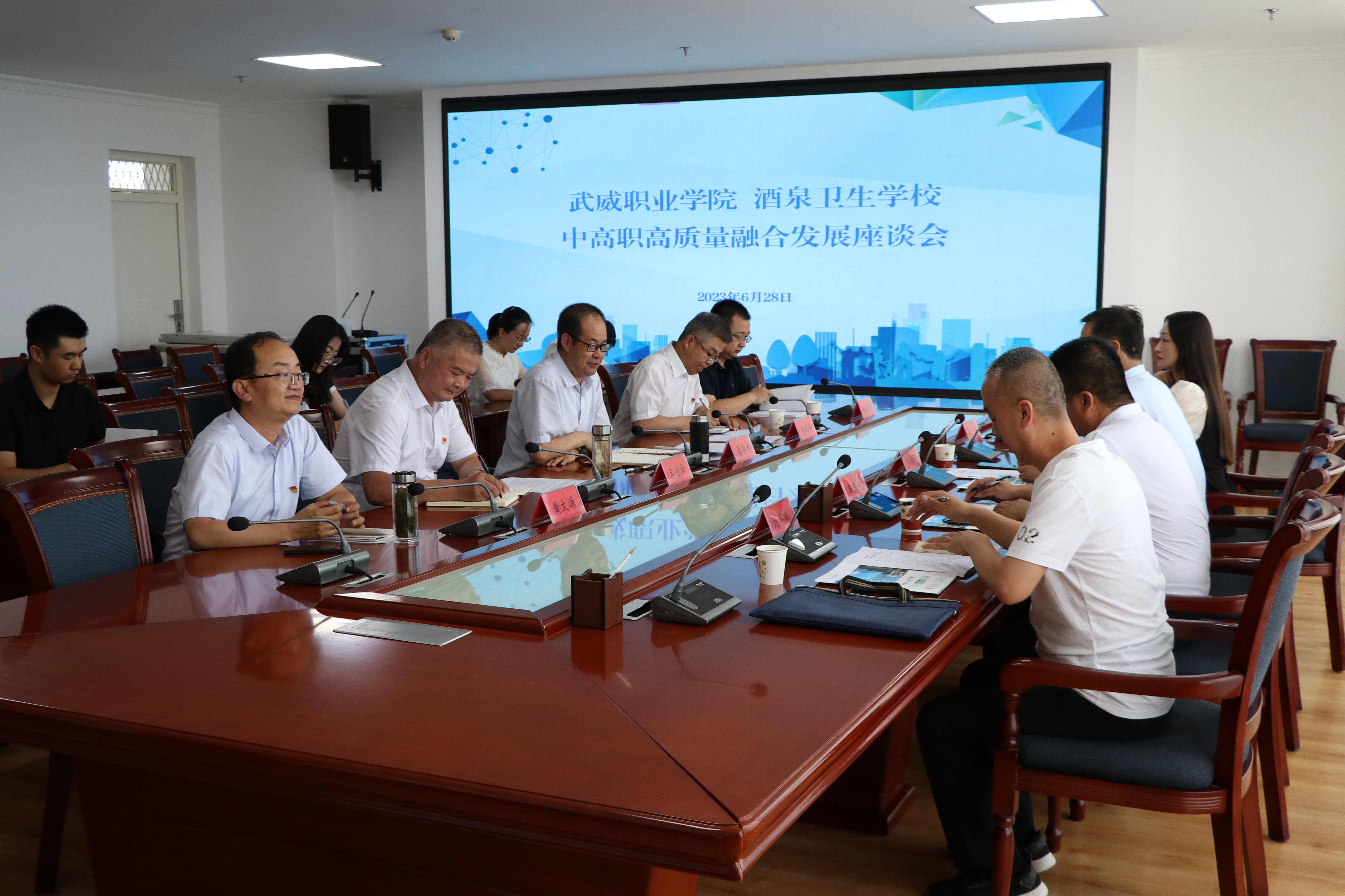 6月28日下午,酒泉衛(wèi)生學校黨委委員、副校長孫俊峰帶領教務科、招生辦公室負責人來我校考察交流。雙方就進一步加強醫(yī)藥衛(wèi)生類專業(yè)學生貫通培養(yǎng)工作在能源樓811會議室開展交流座談。學校黨委副書記翟存祥,黨委委員、副校長王守云,護理學院負責人張建輝,藥學院負責人楊建美,醫(yī)學技術(shù)學院負責人黃文源及教師代表參加會議。會議由翟存祥同志主持。