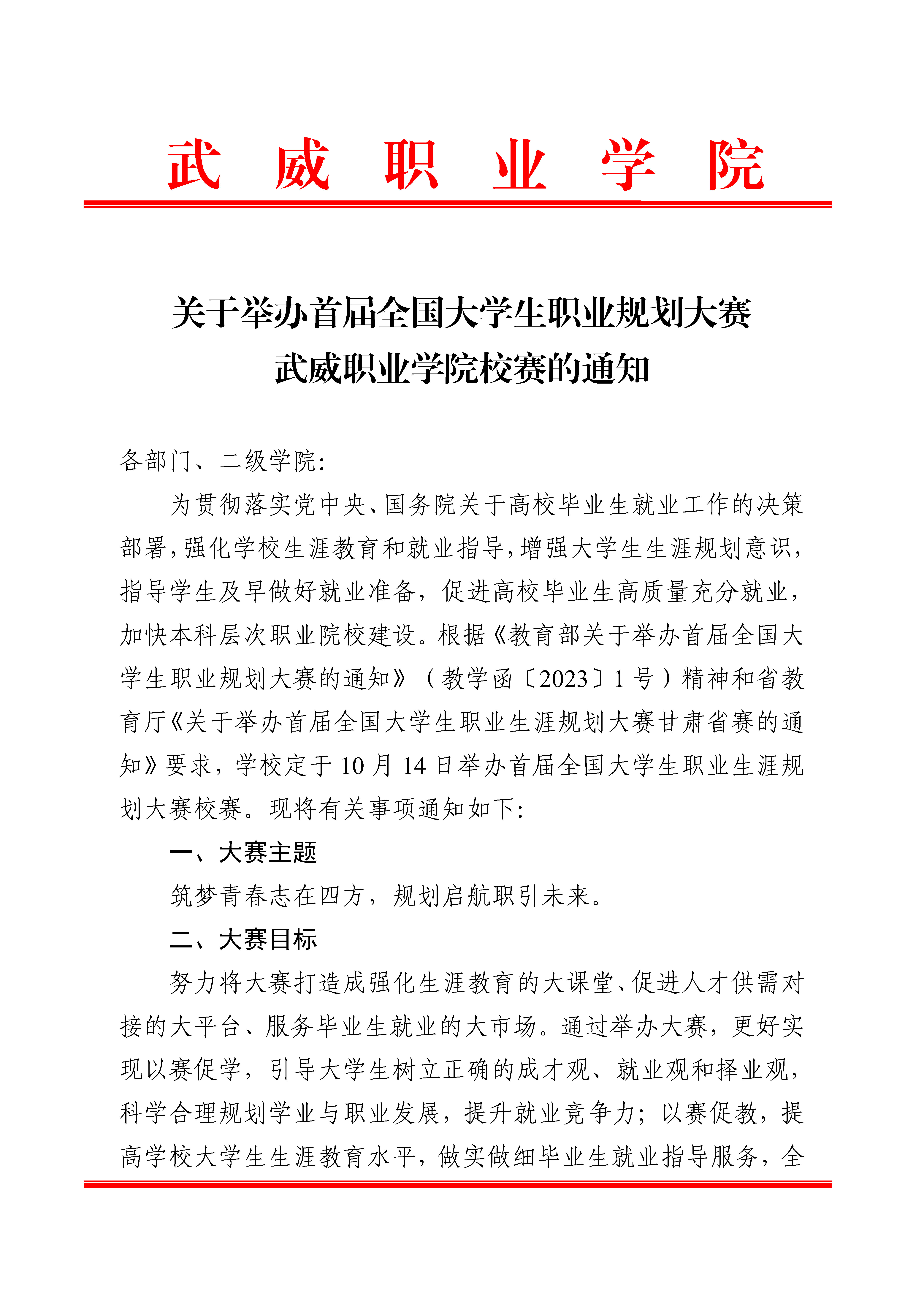 關于舉辦首屆全國大學生職業(yè)規(guī)劃大賽 武威職業(yè)學院校賽的通知