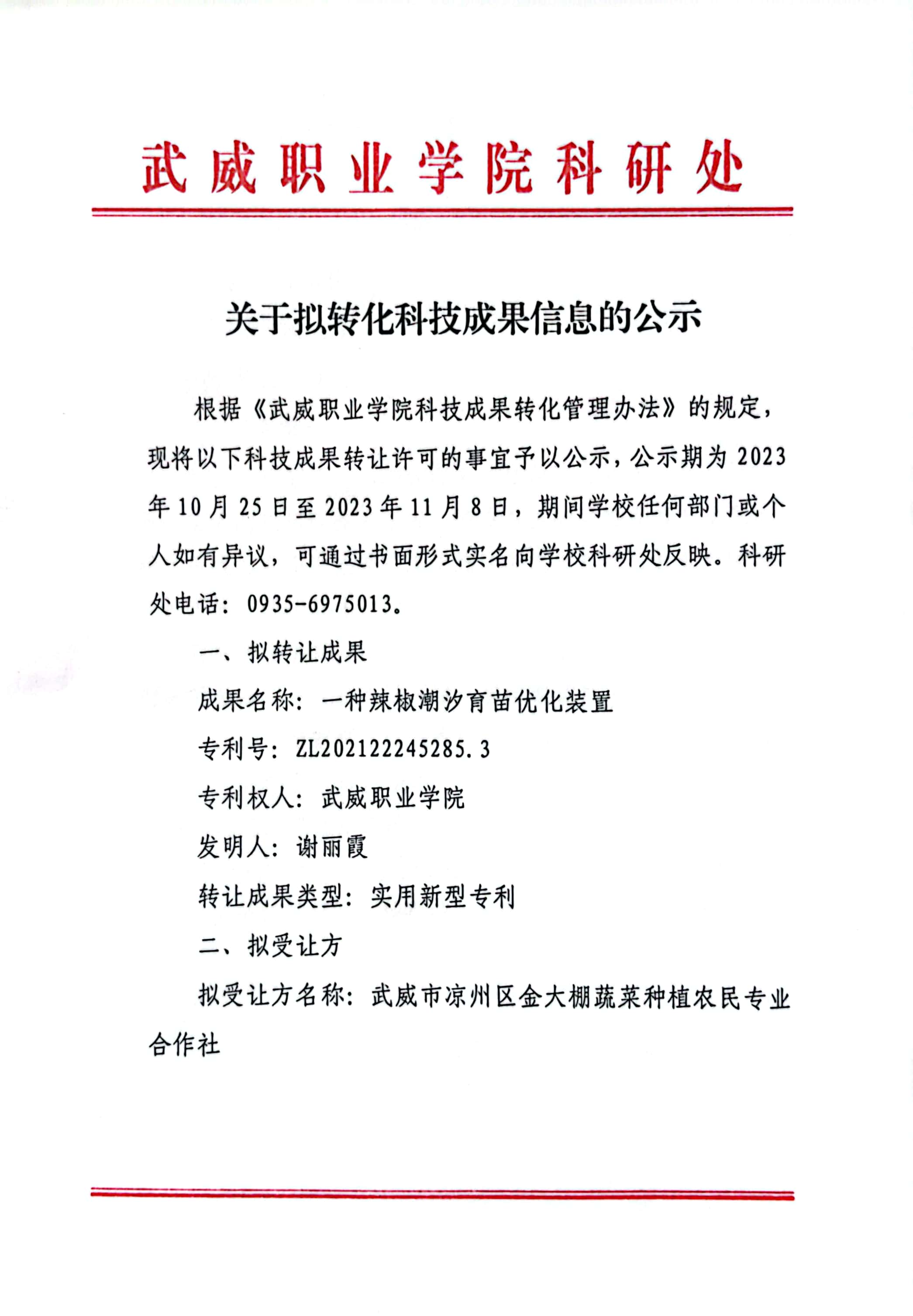 關(guān)于擬轉(zhuǎn)化科技成果信息的公示
