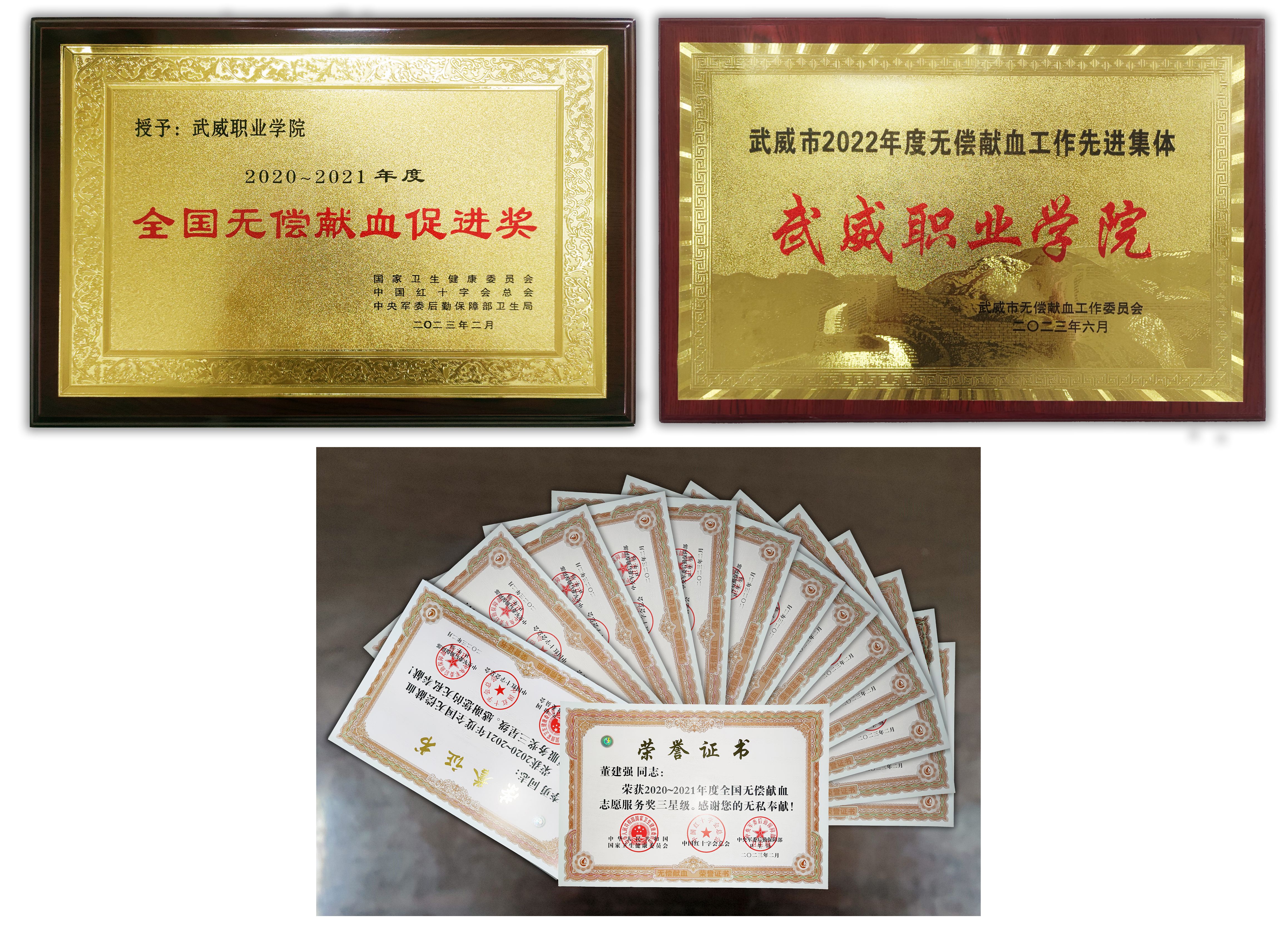 學(xué)校繼2020年獲得“2018-2019年度全國無償獻血促進獎”后,再次榮獲“2020-2021年度全國無償獻血促進獎”,14名師生榮獲全國無償獻血志愿服務(wù)獎。我校護理學(xué)院被評為武威市2022年度無償獻血工作先進集體,1名教師被評為先進個人。
