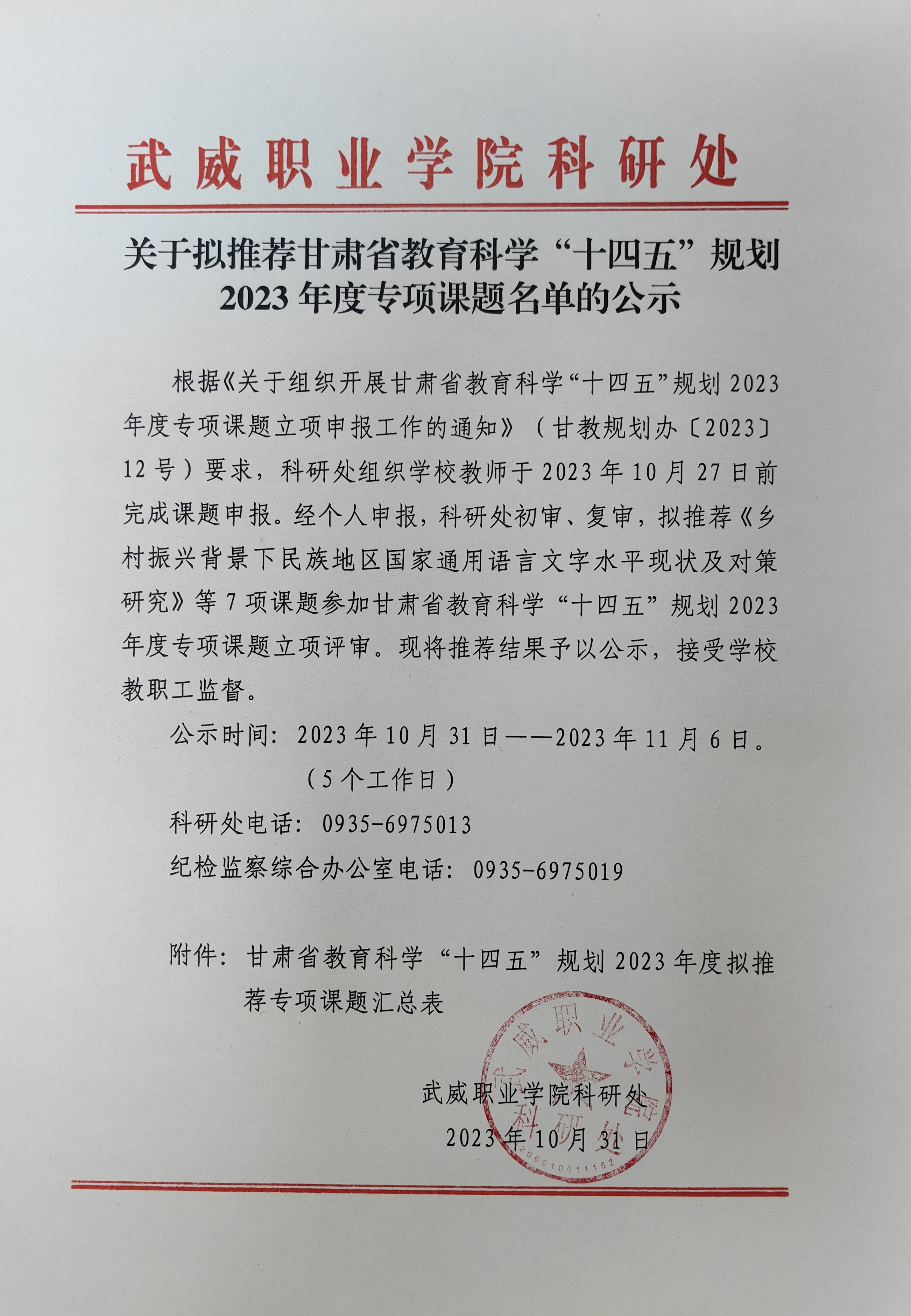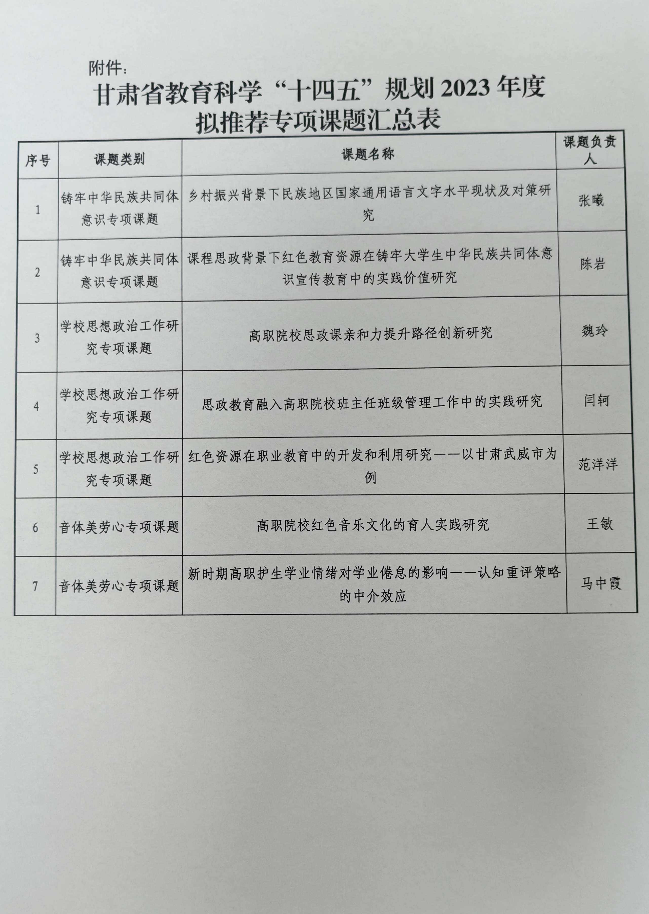 關(guān)于擬推薦甘肅省教育科學“十四五”規(guī)劃2023年度專項課題名單的公示