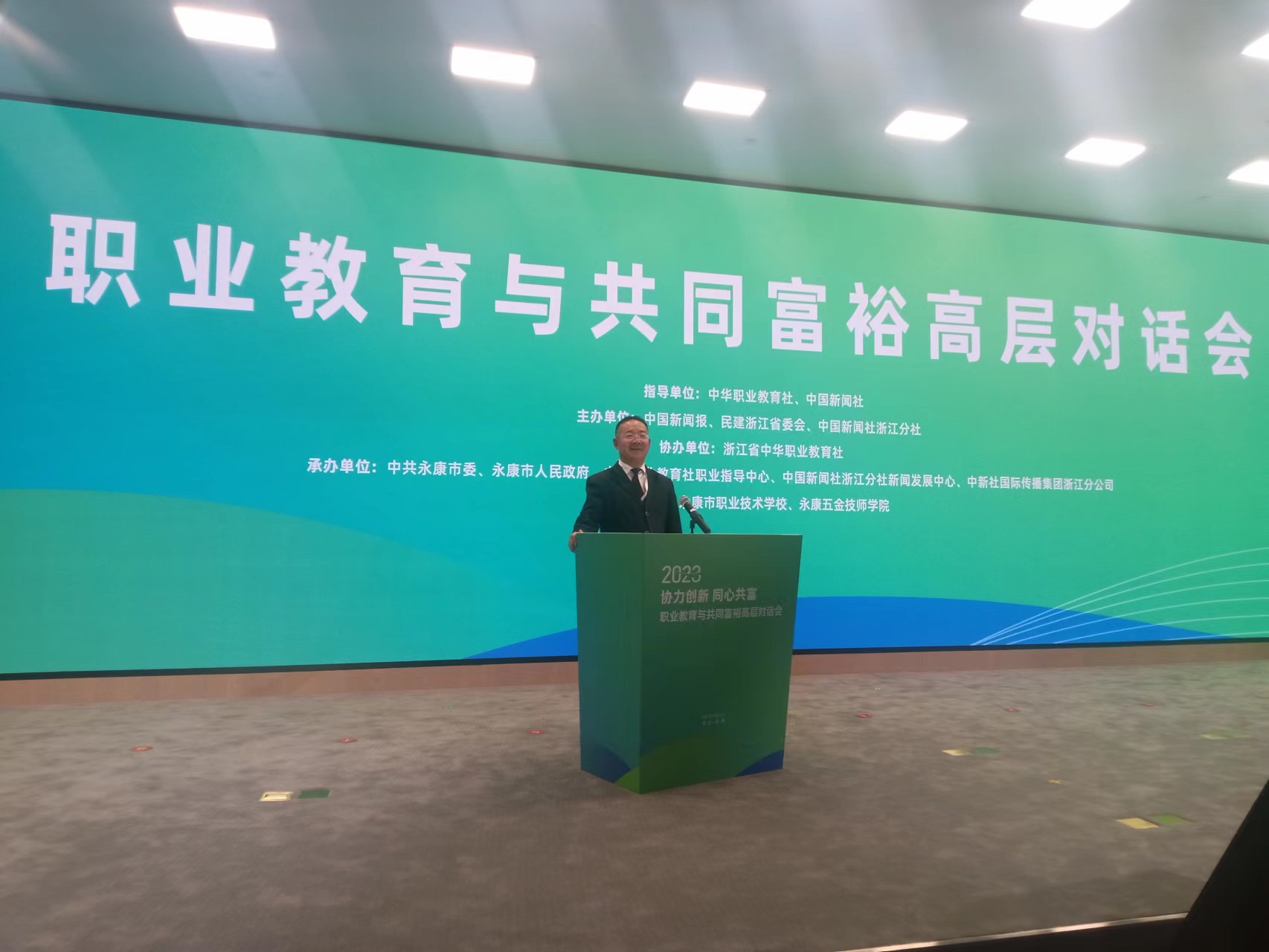 10月26日至27日,職業(yè)教育與共同富裕高層對(duì)話會(huì)在浙江金華永康市舉行。會(huì)議以“協(xié)力創(chuàng)新 同心共富”為主題,由中華職業(yè)教育社、中國(guó)新聞社指導(dǎo),中國(guó)新聞報(bào)、民建浙江省委會(huì)和中國(guó)新聞社浙江分社主辦,浙江省中華職業(yè)教育社協(xié)辦。全國(guó)人大常委會(huì)副委員長(zhǎng)、中華職業(yè)教育社理事長(zhǎng)郝明金,浙江省政協(xié)副主席、浙江省中華職業(yè)教育社主任陳小平出席會(huì)議,國(guó)內(nèi)職業(yè)教育領(lǐng)域?qū)<?、學(xué)者及職業(yè)院校、行業(yè)協(xié)會(huì)、學(xué)術(shù)機(jī)構(gòu)代表等約300人圍繞東西協(xié)作、產(chǎn)教融合等議題展開深入探討。