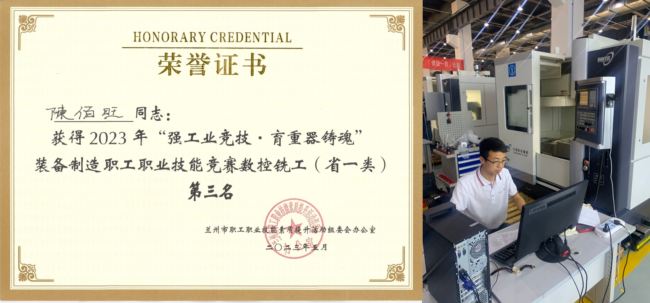 為深入學(xué)習(xí)貫徹黨的二十大精神,聚焦實(shí)施強(qiáng)工業(yè)、強(qiáng)科技、強(qiáng)省會(huì)、強(qiáng)縣城“四強(qiáng)行動(dòng)”,著力打造高技能人才隊(duì)伍,2023年6月,由甘肅省總工會(huì)主辦,蘭州市總工會(huì)和蘭石集團(tuán)承辦的2023年全省職工職業(yè)技能競(jìng)賽“數(shù)控銑”賽項(xiàng)省級(jí)一類(lèi)決賽在蘭州新區(qū)舉辦,來(lái)自全省22個(gè)企事業(yè)單位46名職工選手參賽。工會(huì)聯(lián)合工程技術(shù)學(xué)院積極組隊(duì)參賽,代表武威市參加了本次比賽。經(jīng)過(guò)三天的競(jìng)技角逐,我校教師陳佰旺取得二等獎(jiǎng)(第三名)的優(yōu)異成績(jī),獲得了“甘肅省技術(shù)能手”和“甘肅省技術(shù)標(biāo)兵”榮譽(yù)稱(chēng)號(hào)。