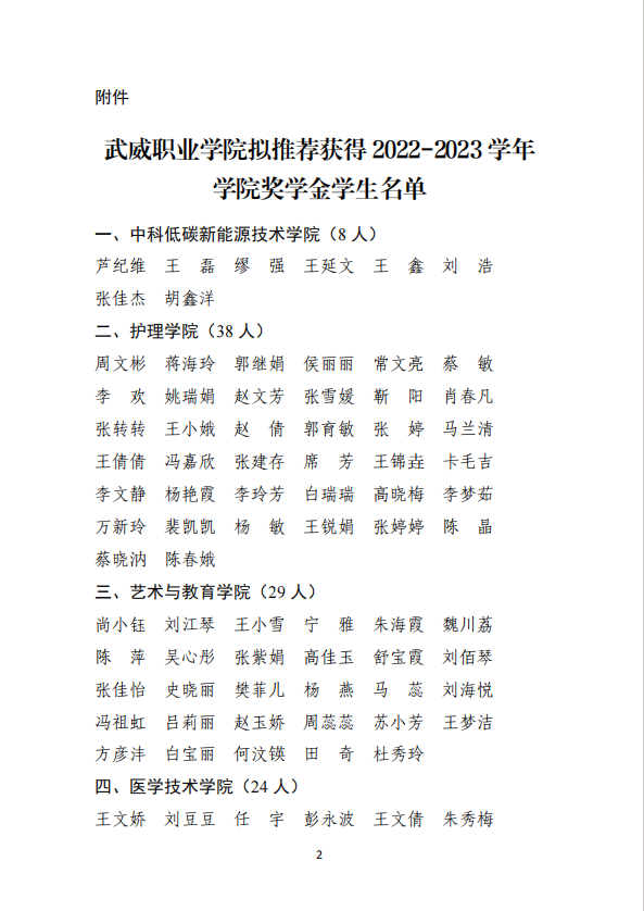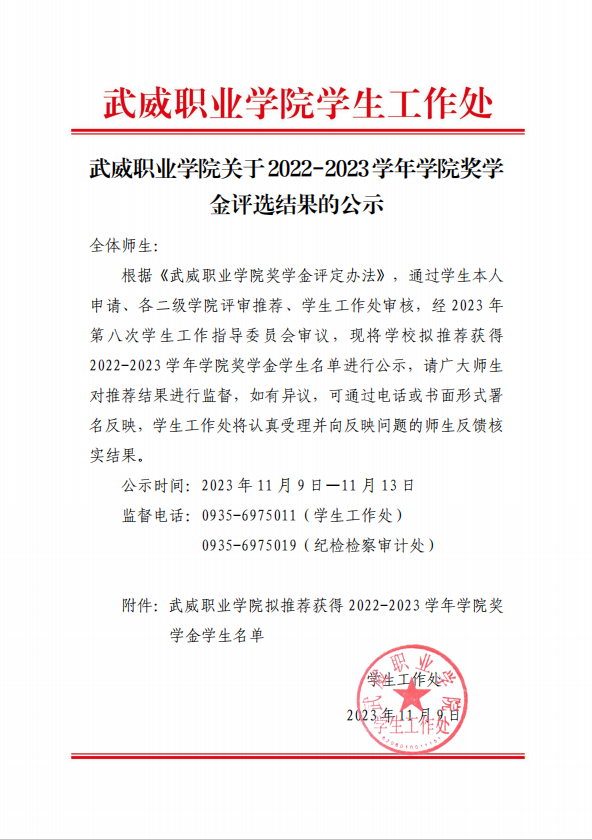 武威職業(yè)學(xué)院關(guān)于2022-2023學(xué)年學(xué)院獎(jiǎng)學(xué)金評(píng)選結(jié)果的公示